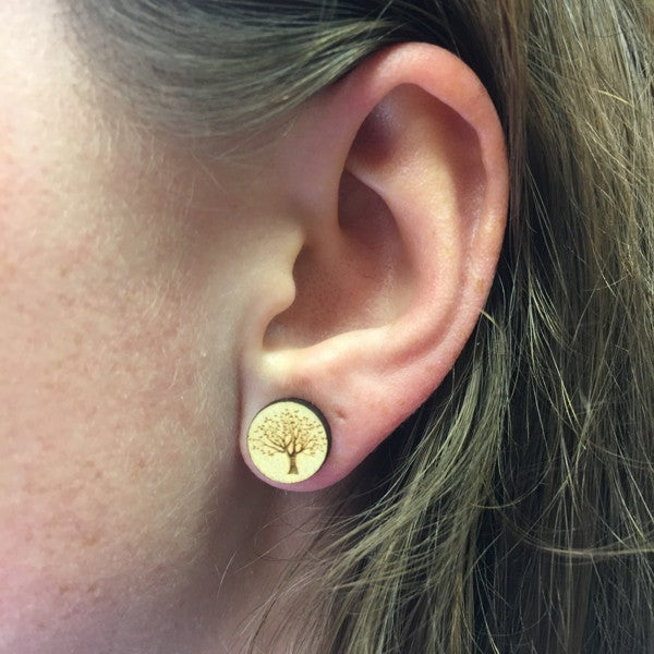 Houten oorbellen - Boom
