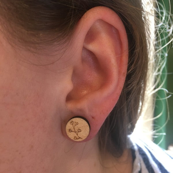 Houten oorbellen - Hartjesplant