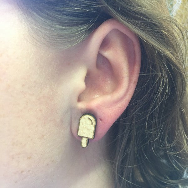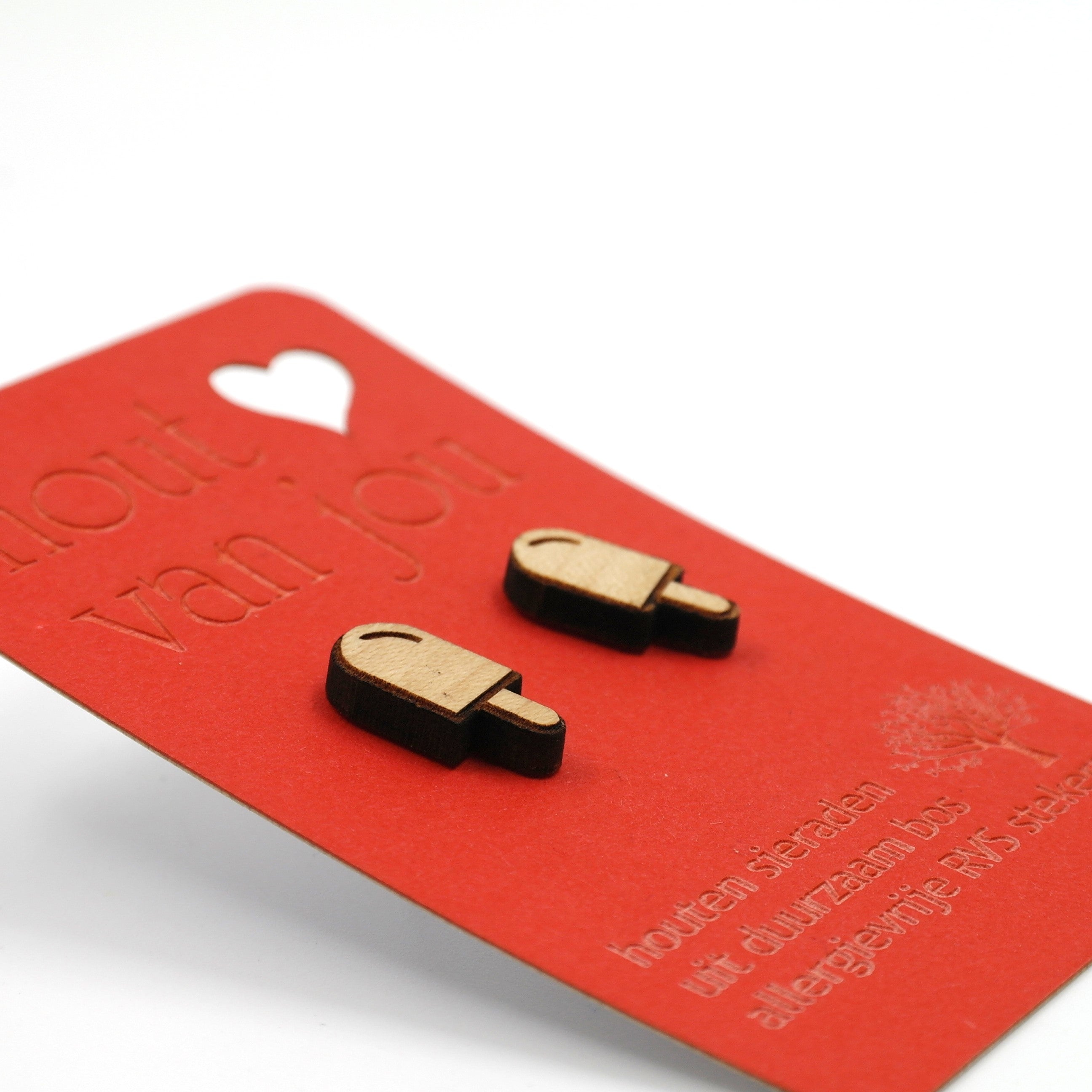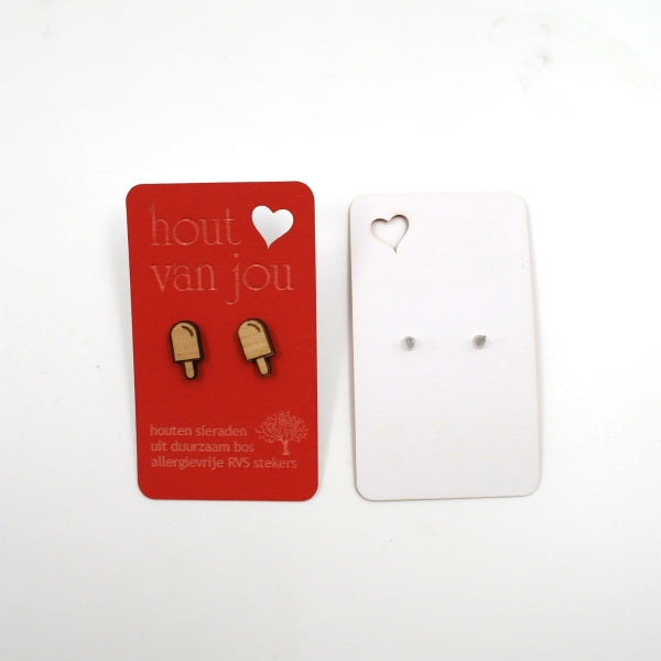 Houten oorbellen - Ijsje