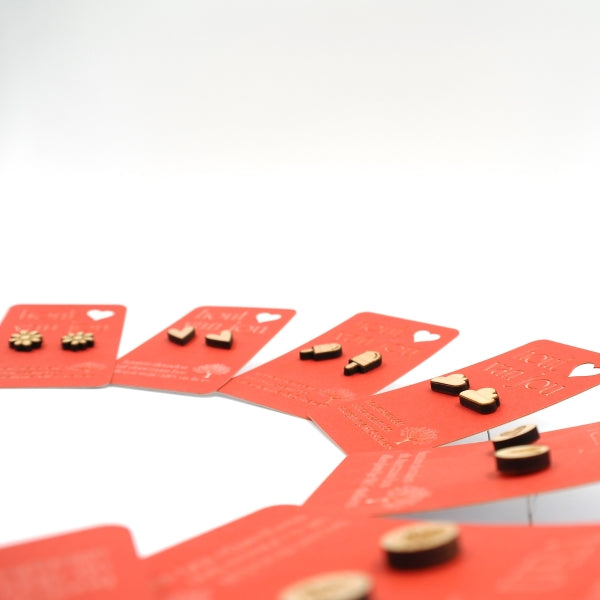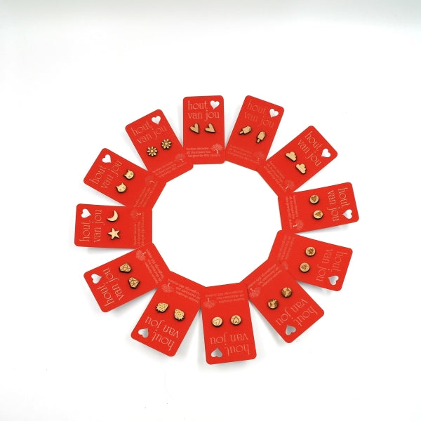Houten oorbellen - Mix van 12 - Vormen en symbolen
