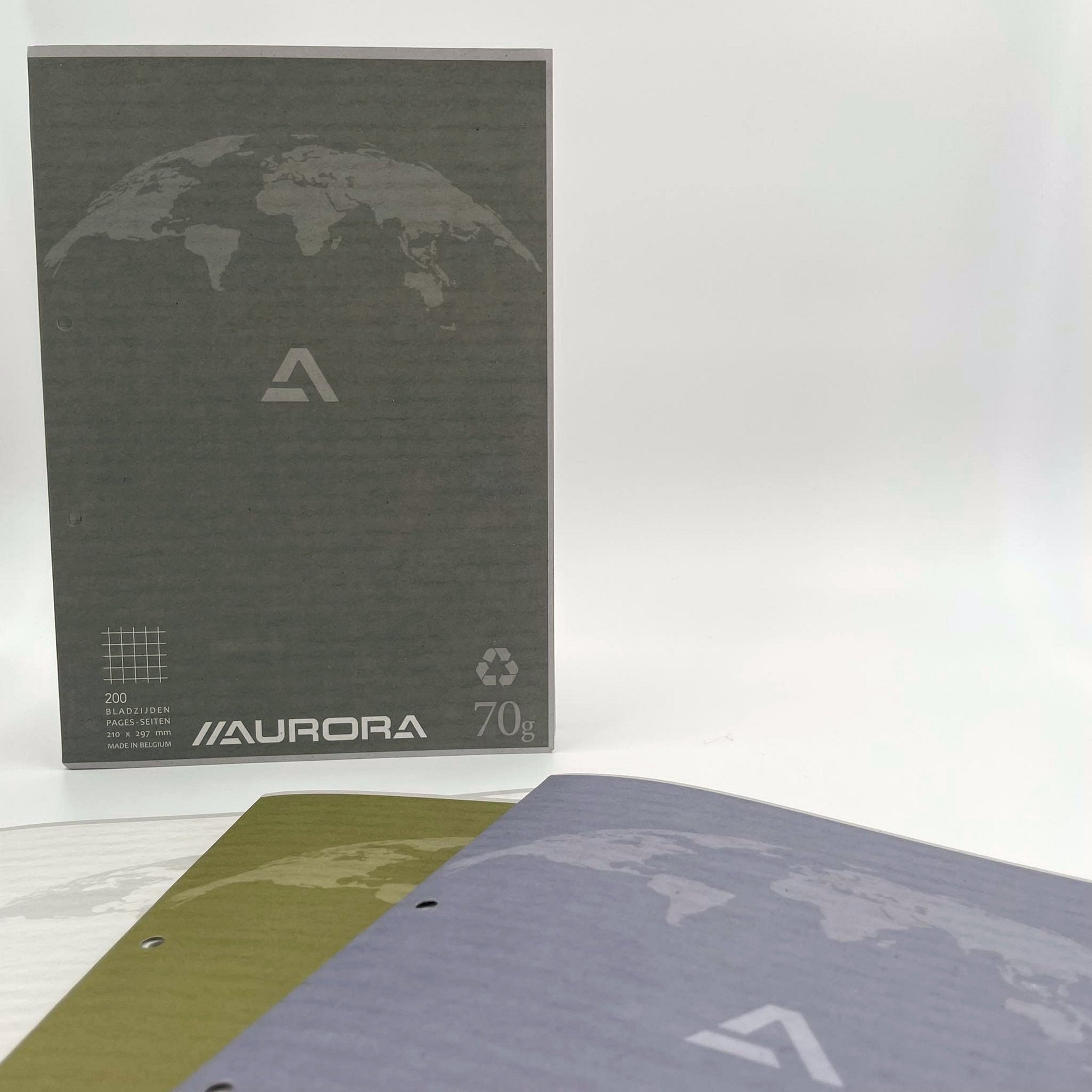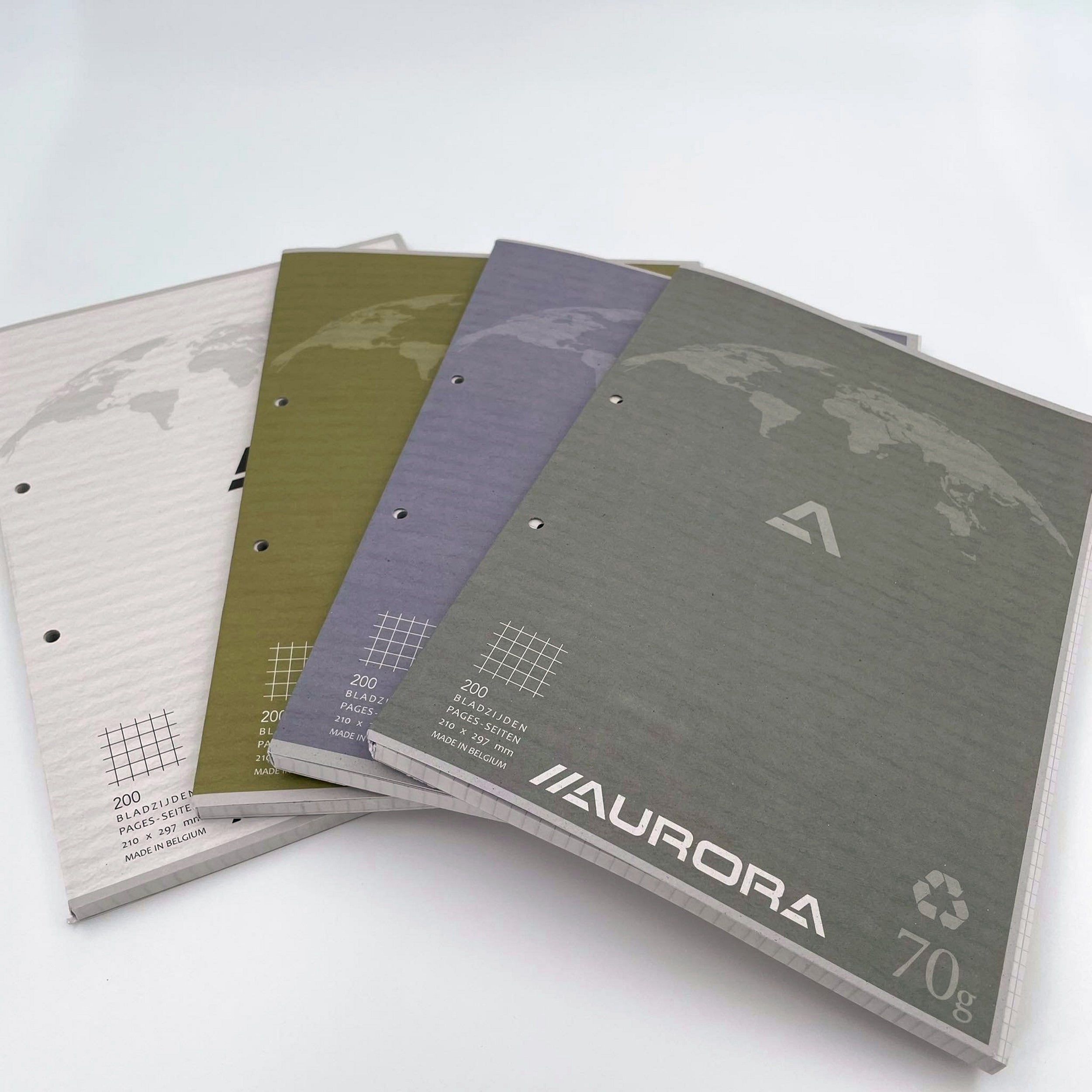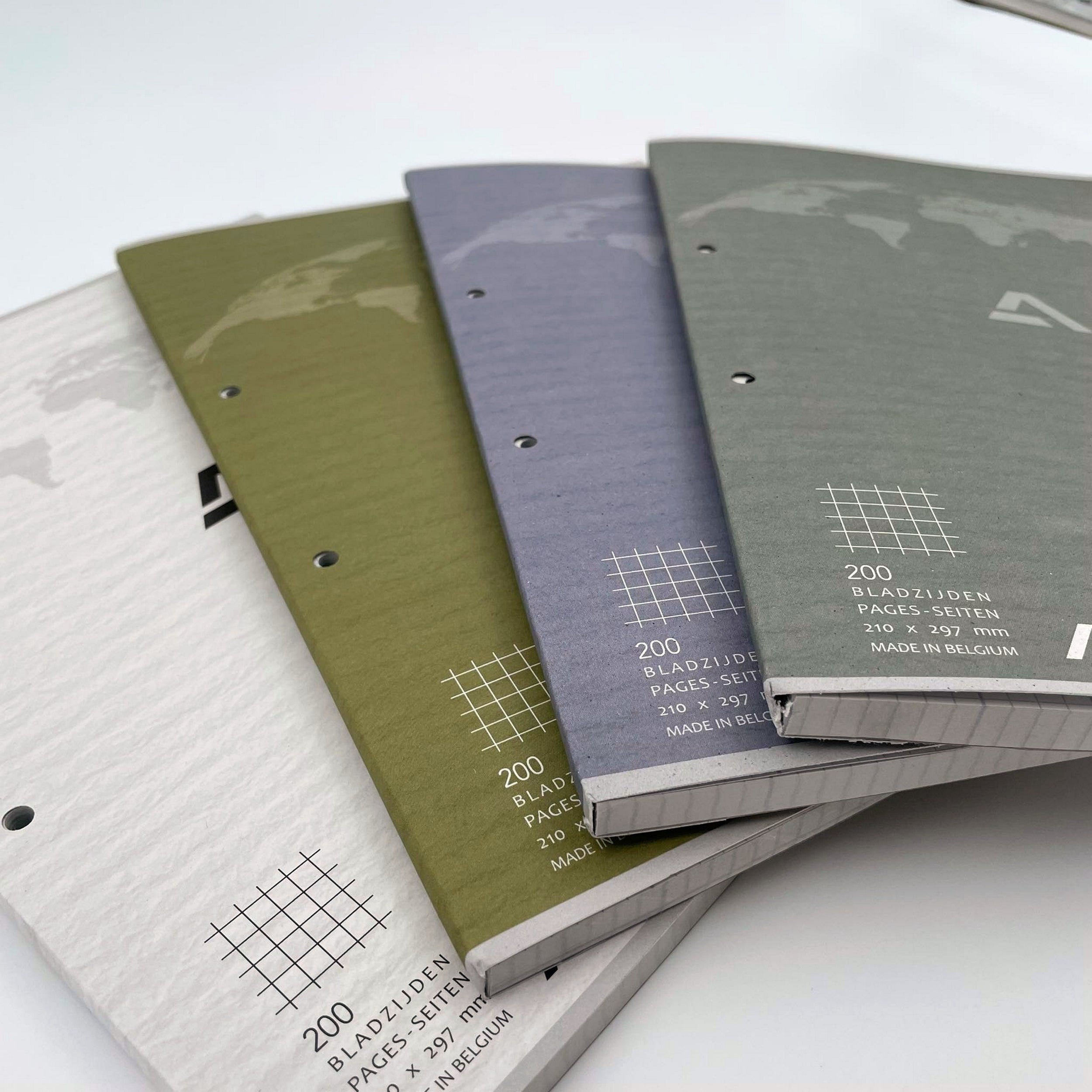 Le bloc-notes ECO A4, avec 2 trous de classement, 100 feuilles lignées (8 mm), utilisation recto verso en papier recyclé 70 g, couverture design avec motif nature.