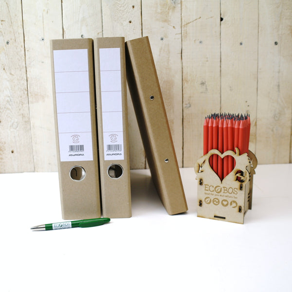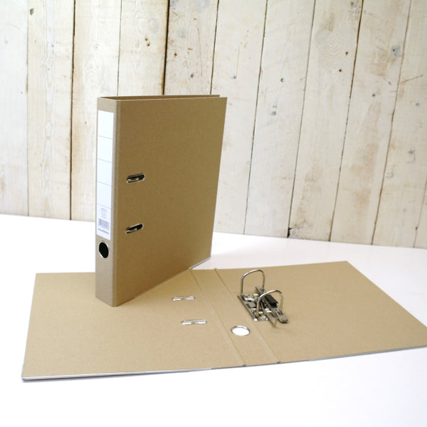 Classeur à levier ECOFILE, format 280x180mm, dos 40mm - en carton kraft brun robuste de 1600g avec renfort de bord métallique et étiquette adhésive.