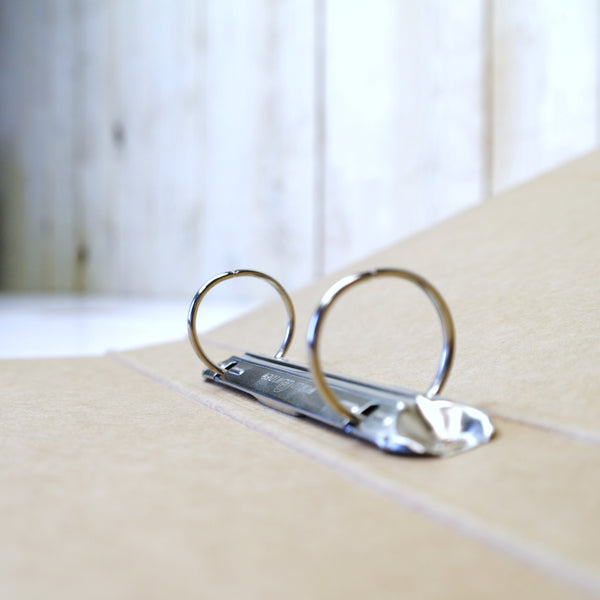 Classeur à anneaux ECOFILE en carton kraft brun robuste de 1600 g avec deux anneaux en O de 25 mm pour tourner facilement vos feuilles A4.