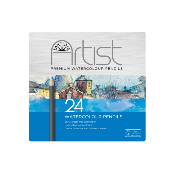 Blikken doos met 24 assorti aquarel-kleurpotloden - FSC 100%