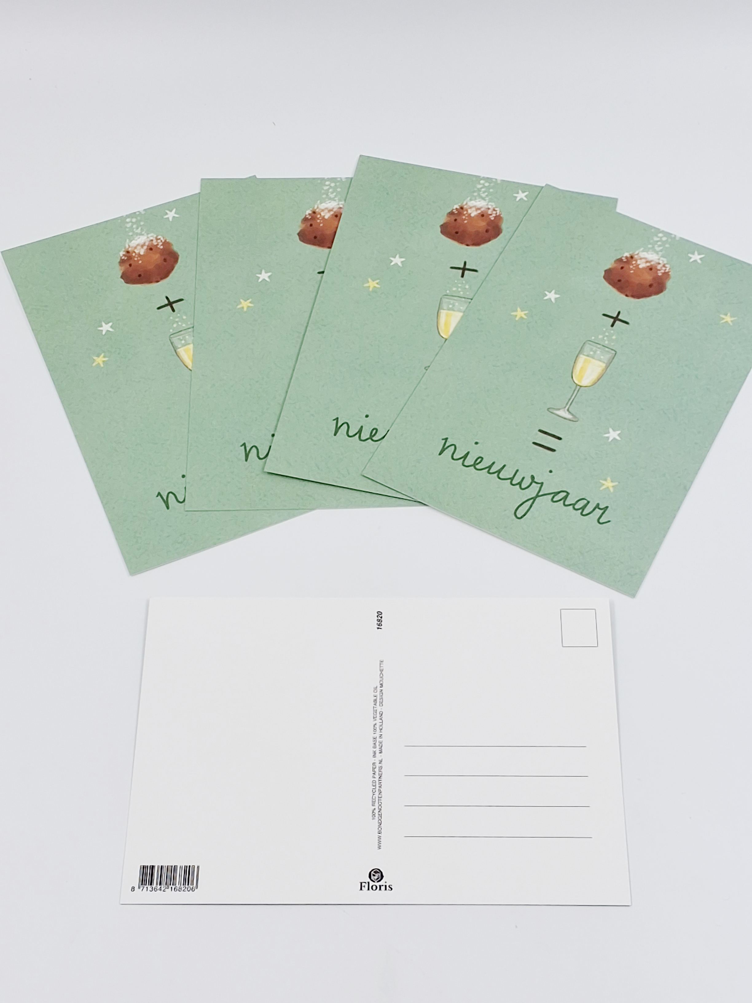De ansichtkaarten hebben geen envelop nodig, je plakt de postzegel op de achterkant van de kaart.