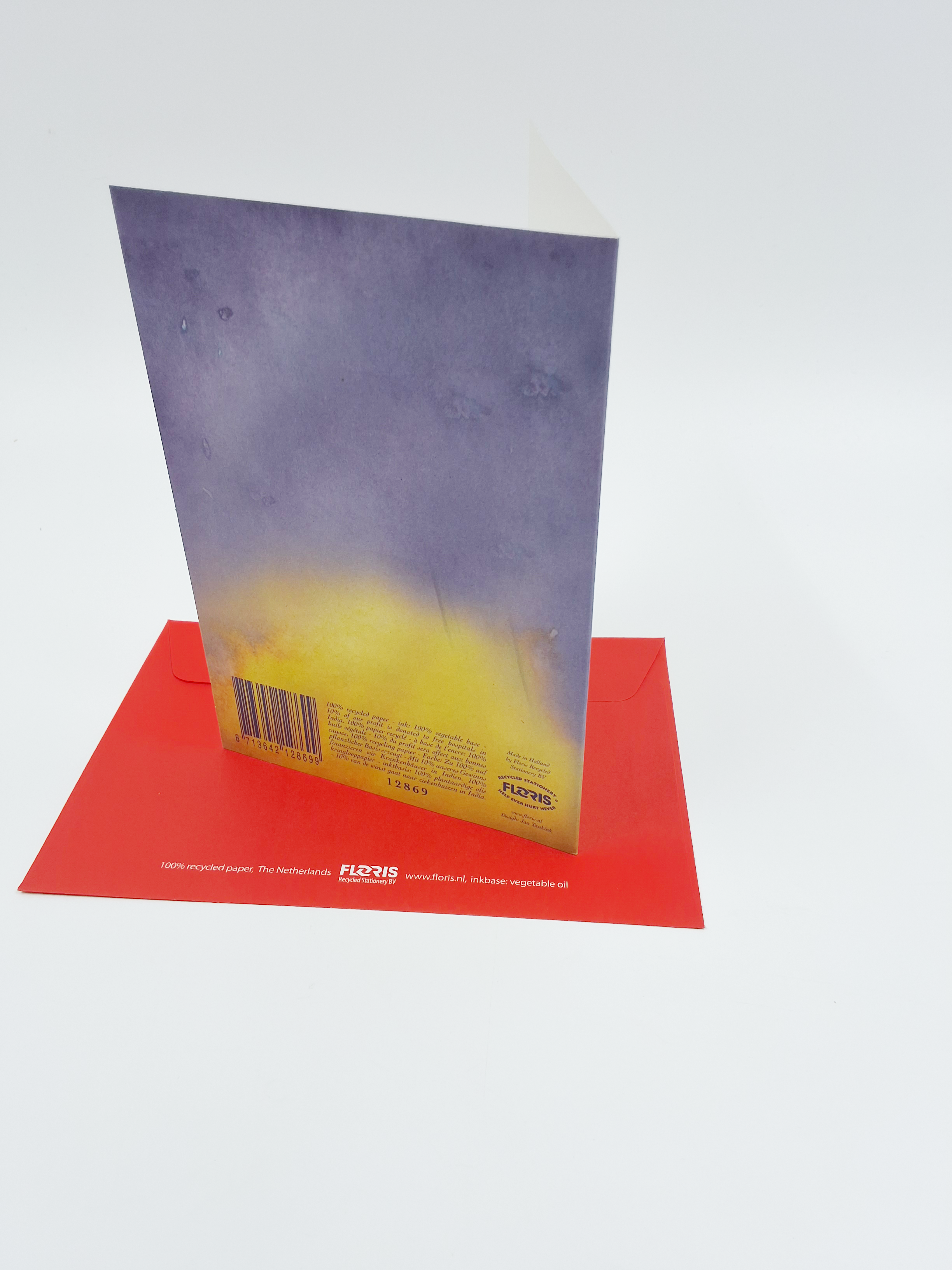 Onze kerstkaarten zijn gemaakt van gerecycled papier en bedrukt met inkt op basis van plantaardige olie.