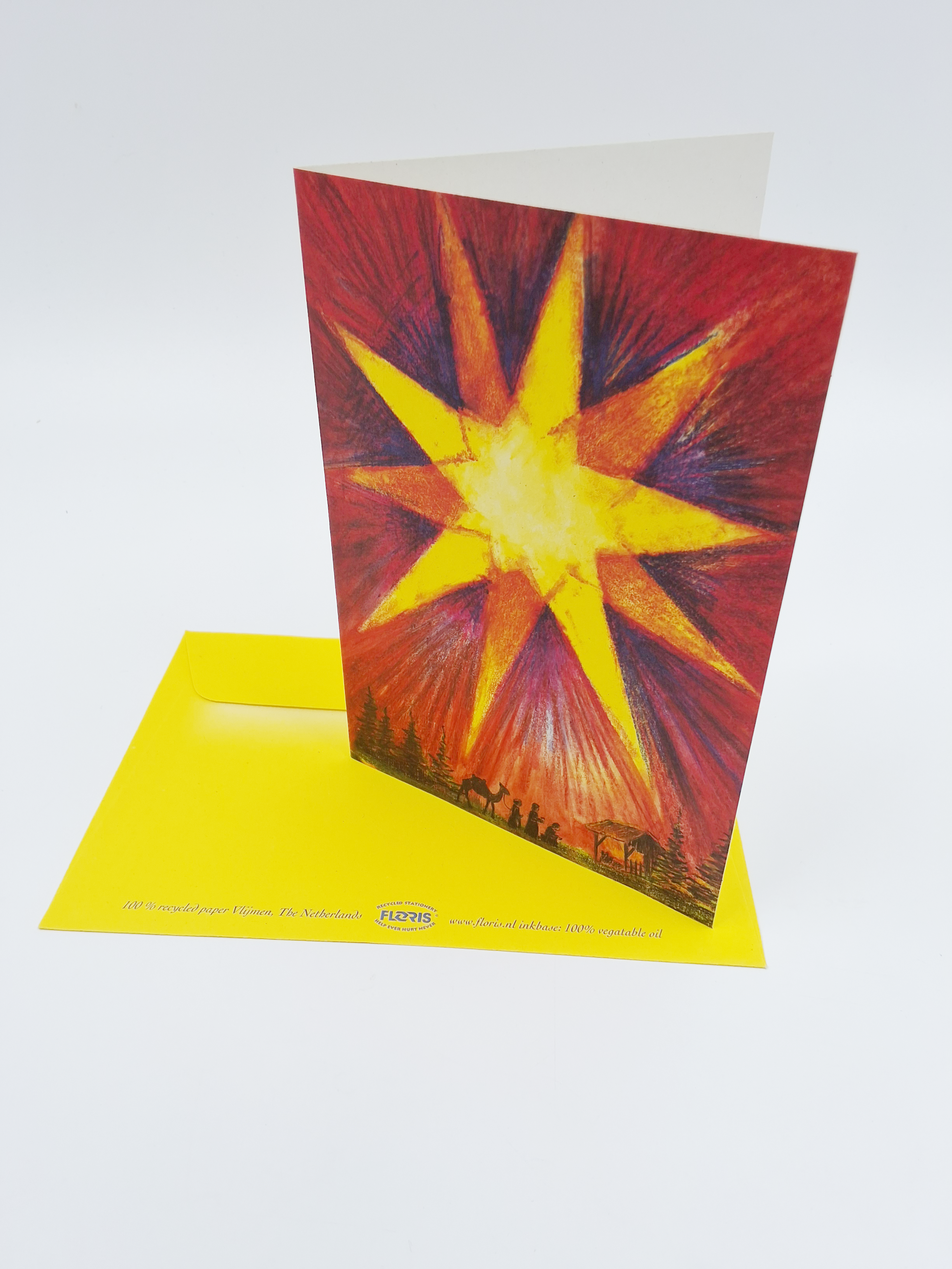 Onze kerstkaarten zijn gemaakt van gerecycled papier en bedrukt met inkt op basis van plantaardige olie.