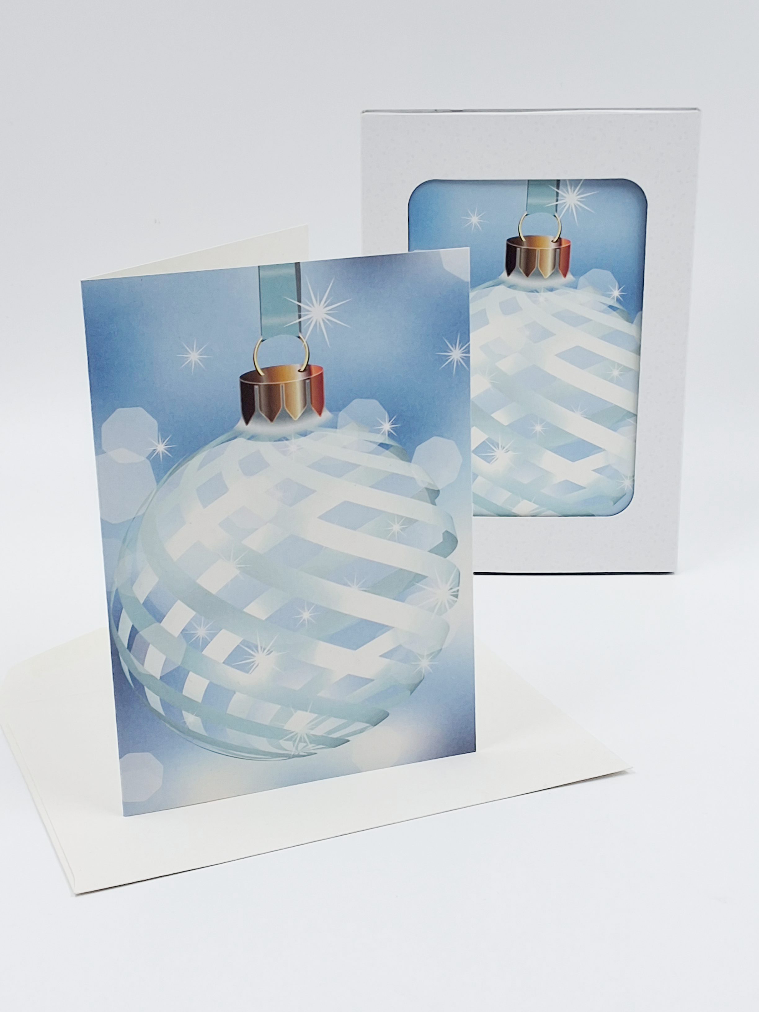 Kerstkaarten doosje 10x blauwe kerstbal (F13072)