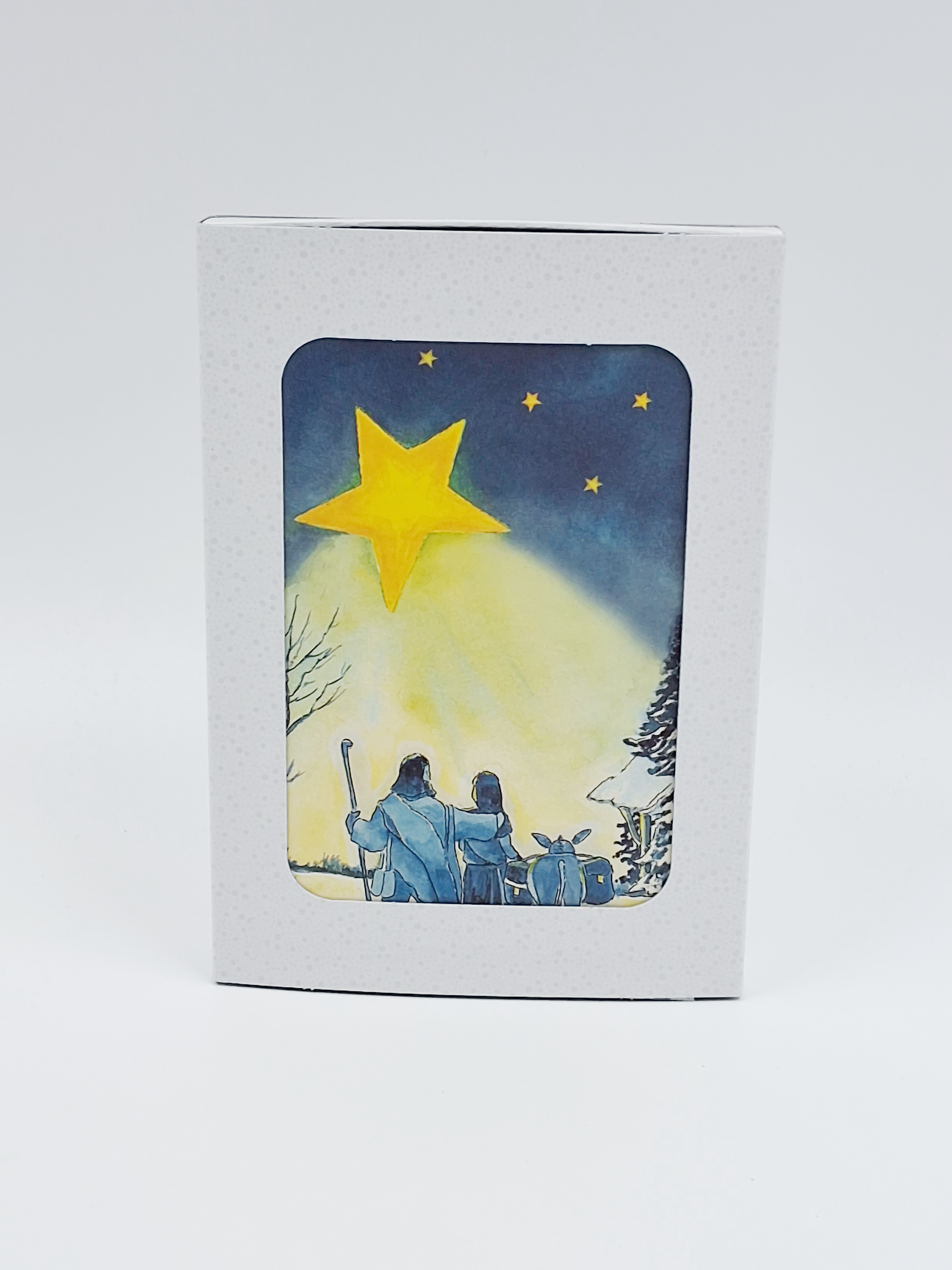 Kerstkaarten doosje 10x ezel Jozef Maria (F12963)