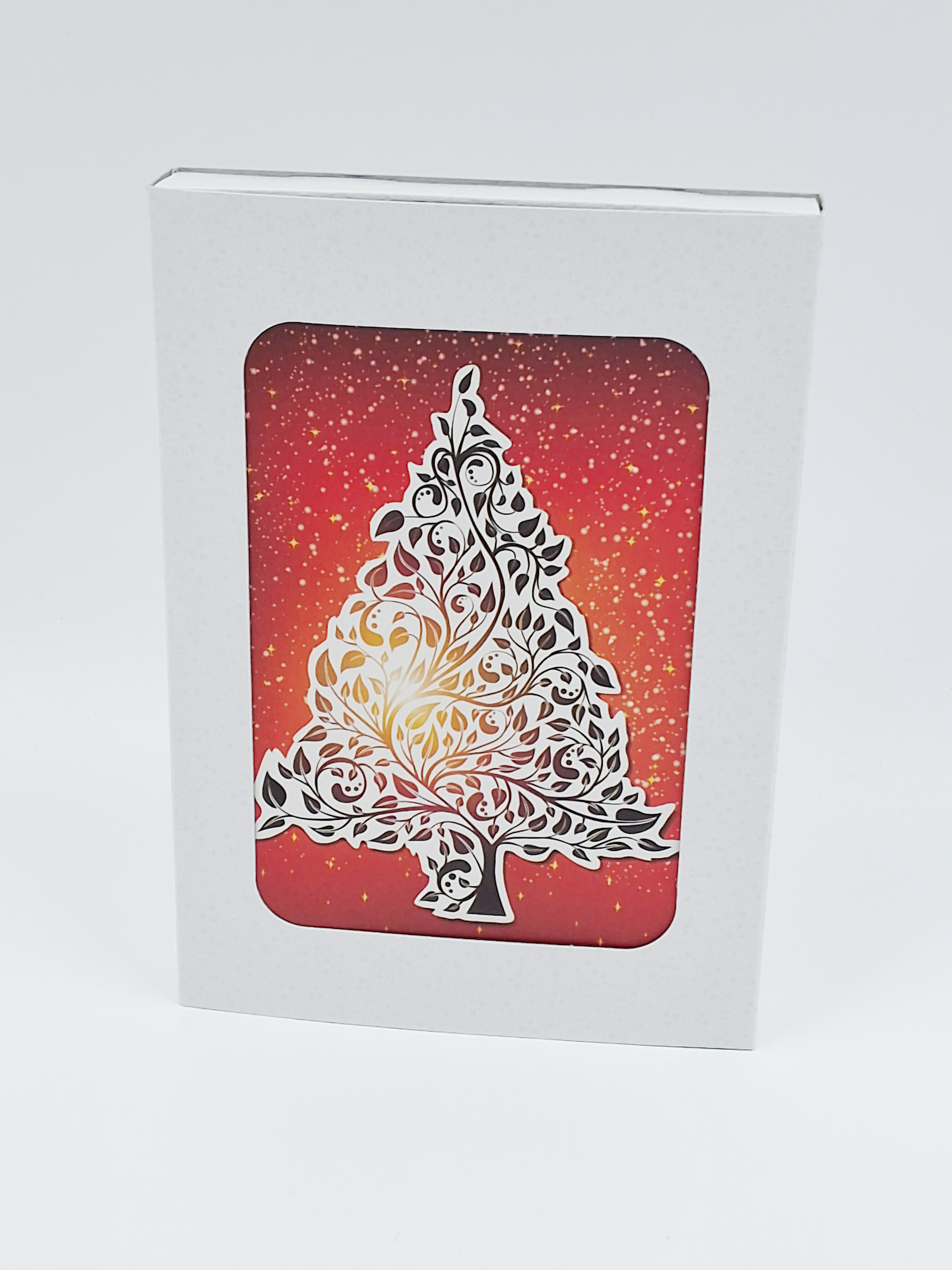 Kerstkaarten doosje 10x kerstboom rood goud (F13015)