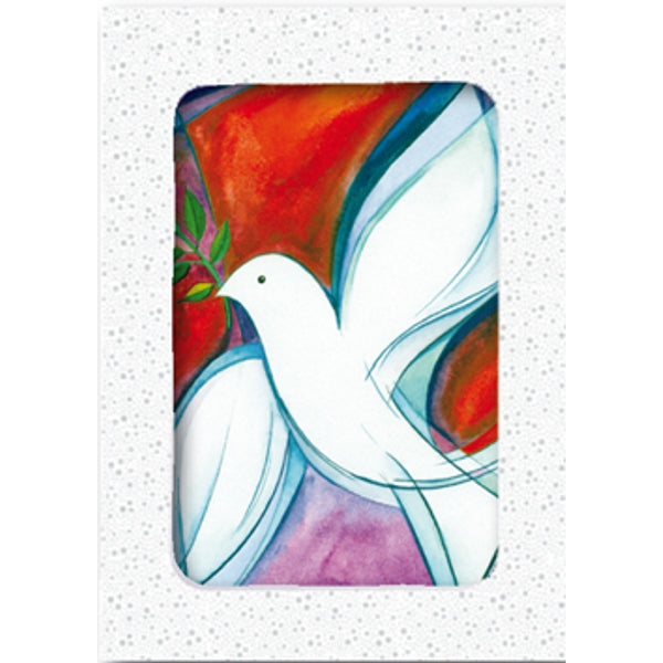 Kerstkaarten doosje 10x kerstduif wit rood (F12962)