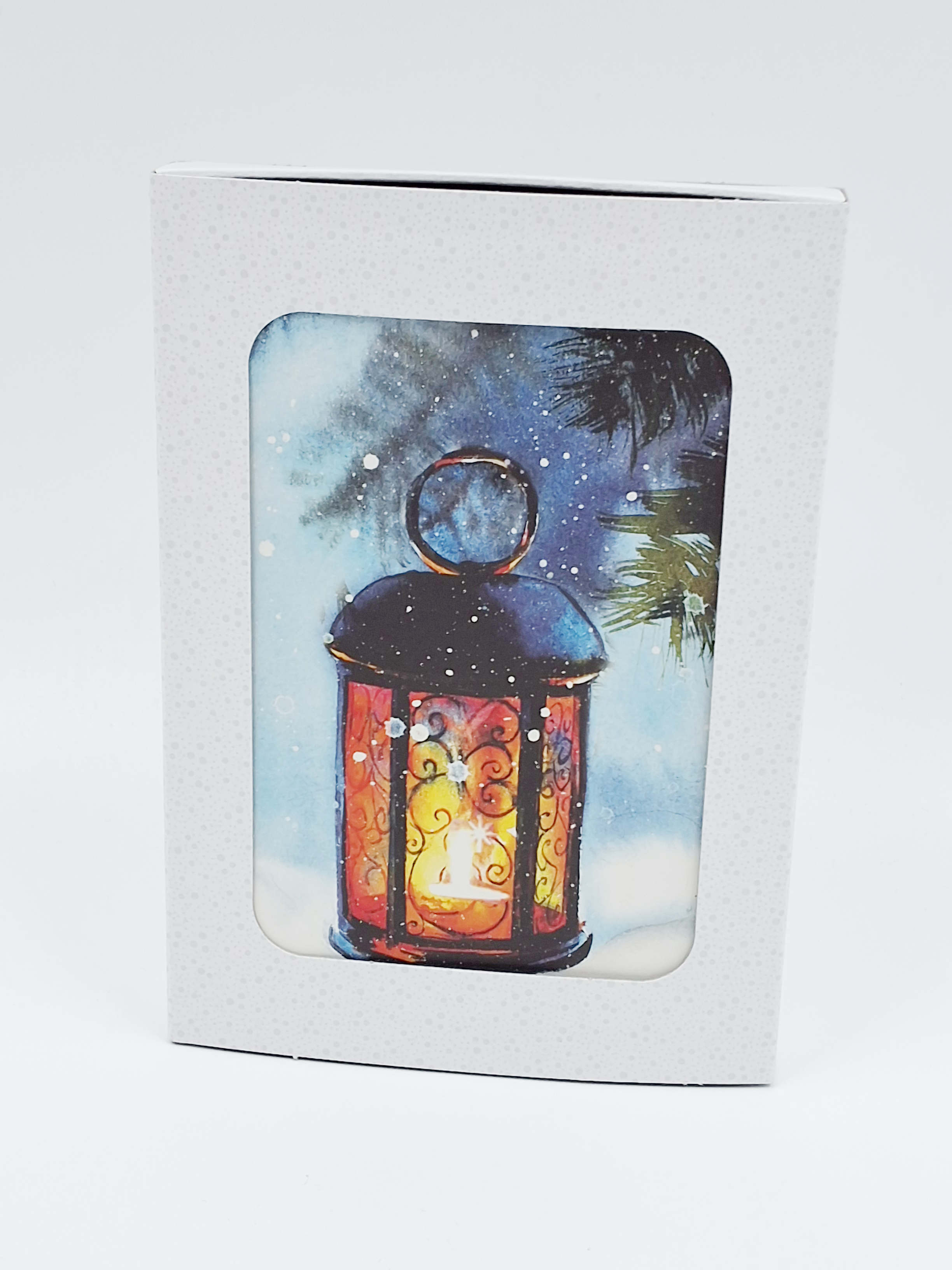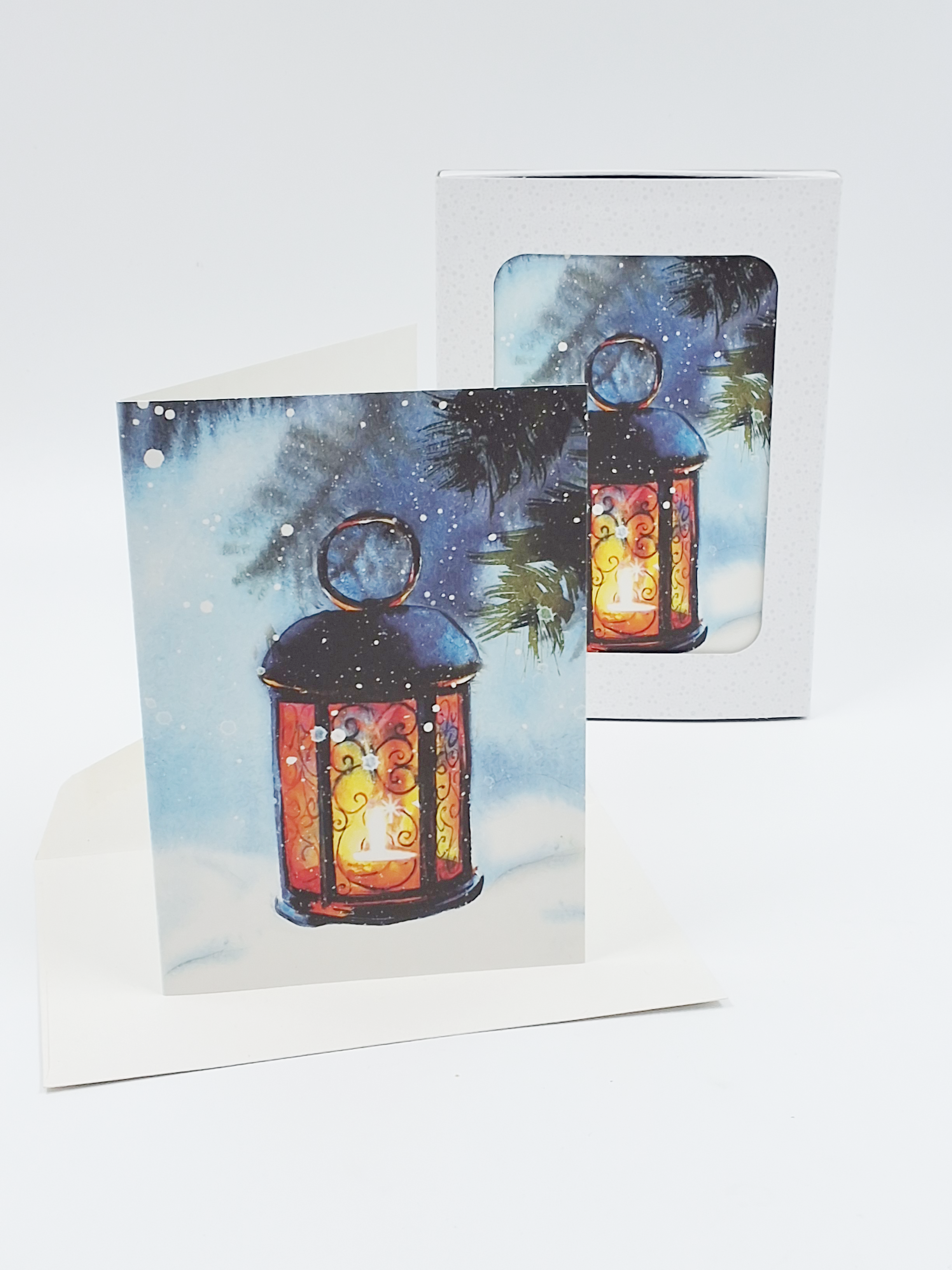 Kerstkaarten doosje 10x lantaarn (F12992)