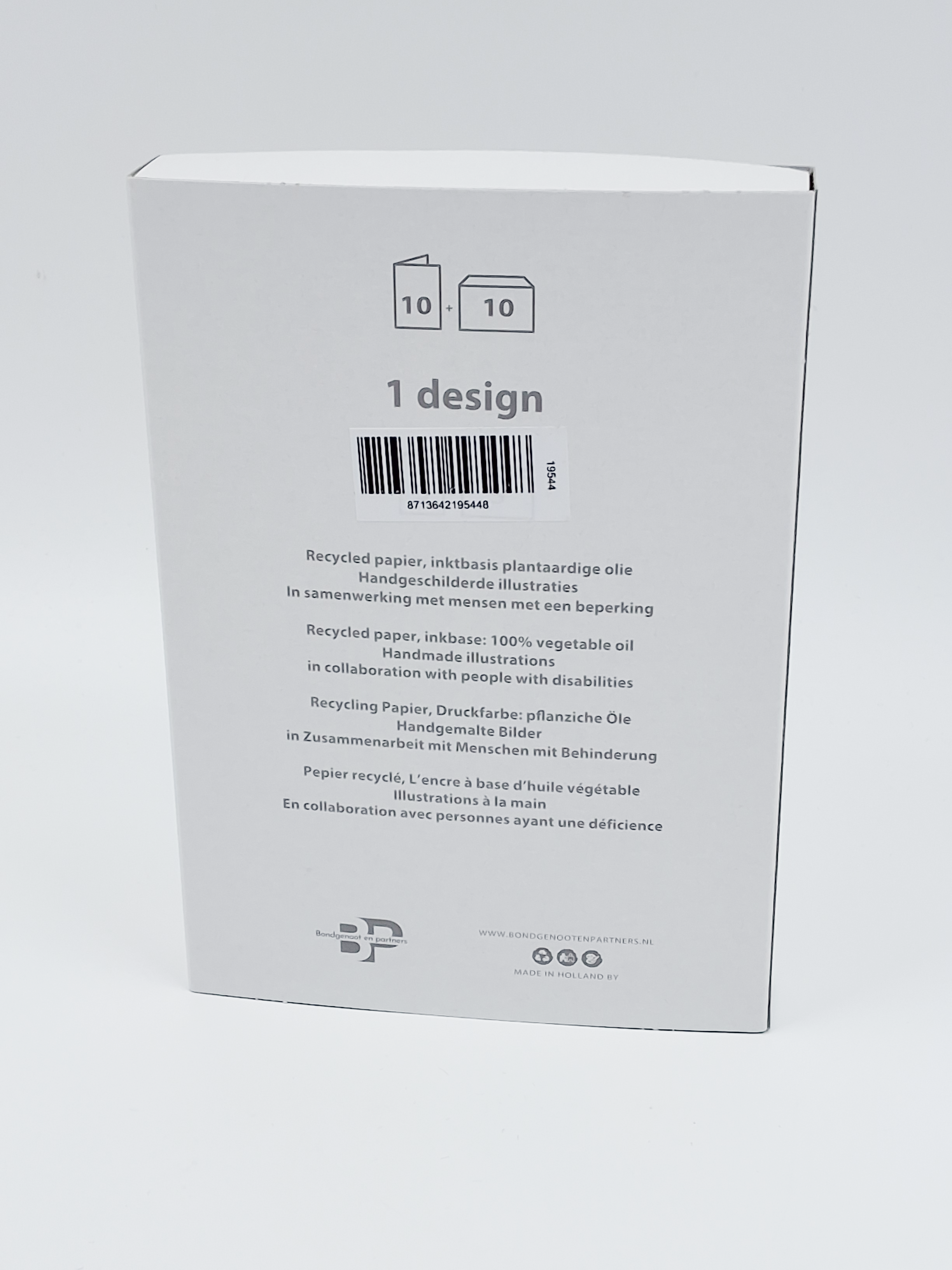 Onze kerstkaarten zijn gemaakt van gerecycled papier en bedrukt met inkt op basis van plantaardige olie.