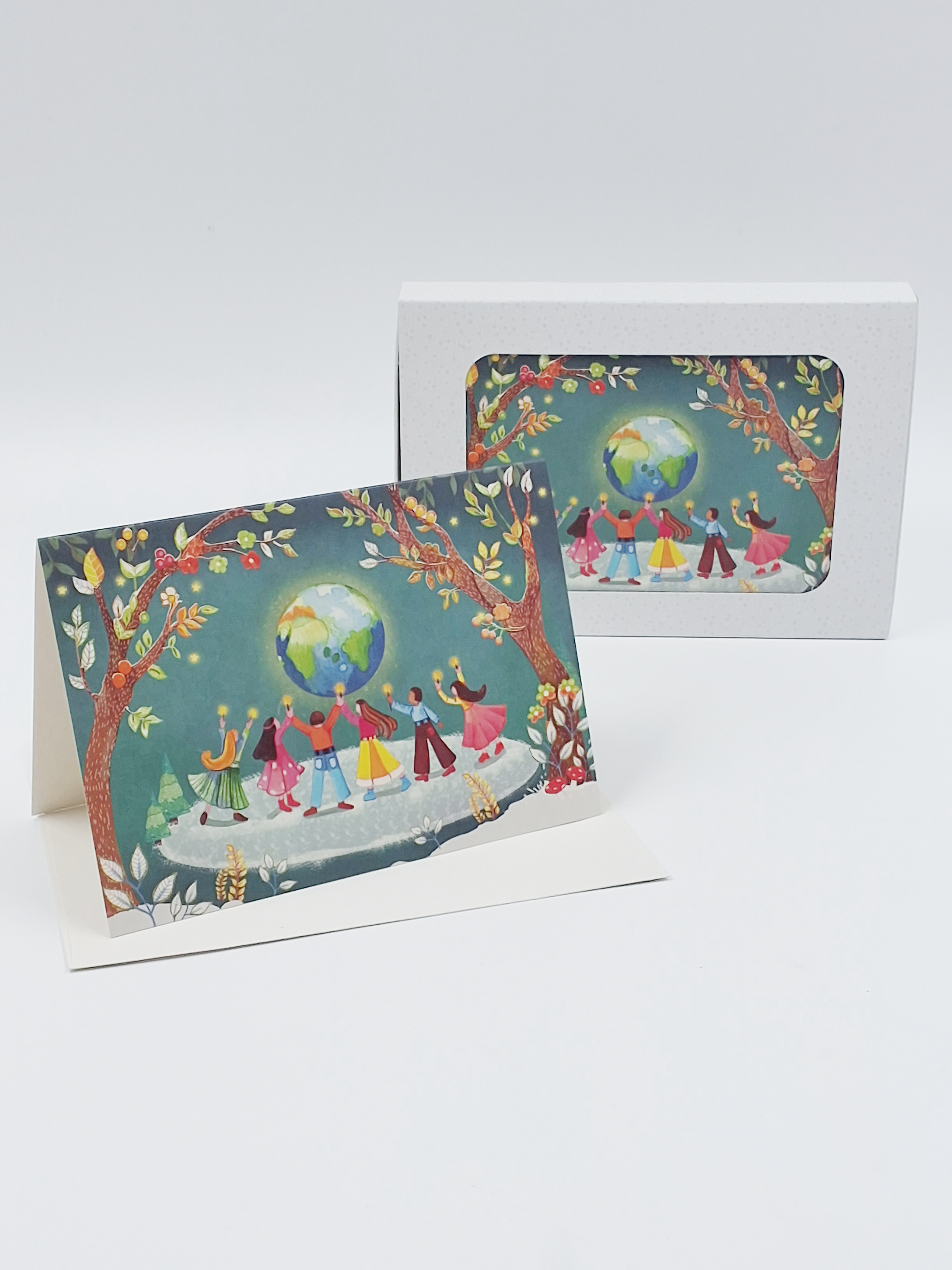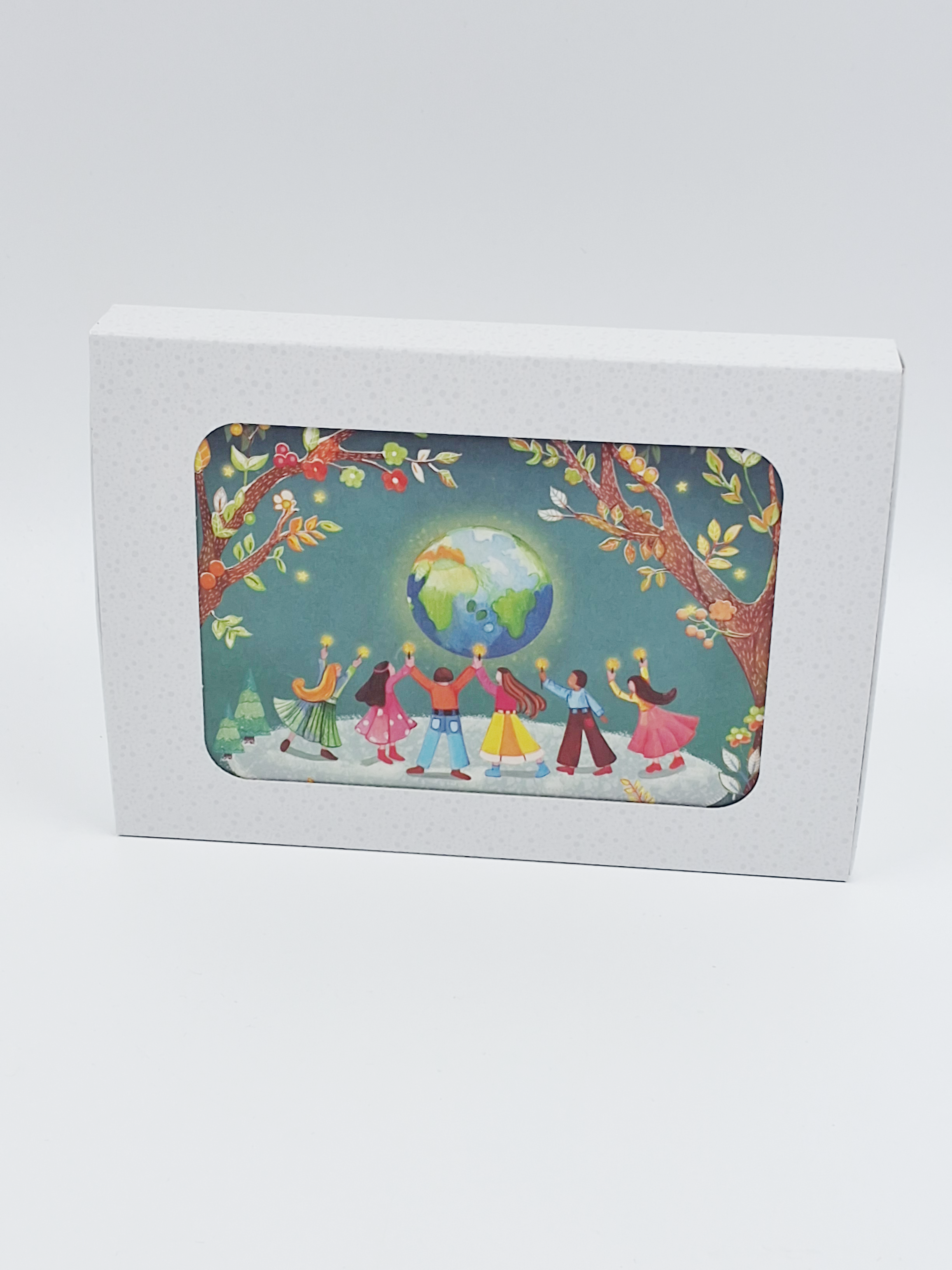 Kerstkaarten doosje 10x wereldbol en kinderen (F13117)