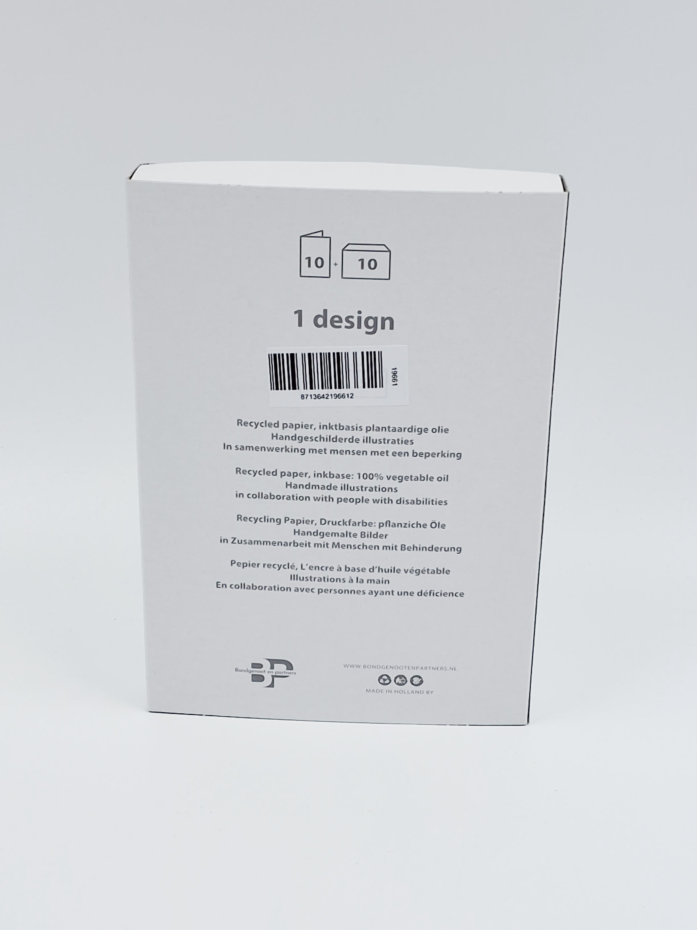 Onze kerstkaarten zijn gemaakt van gerecycled papier en bedrukt met inkt op basis van plantaardige olie.