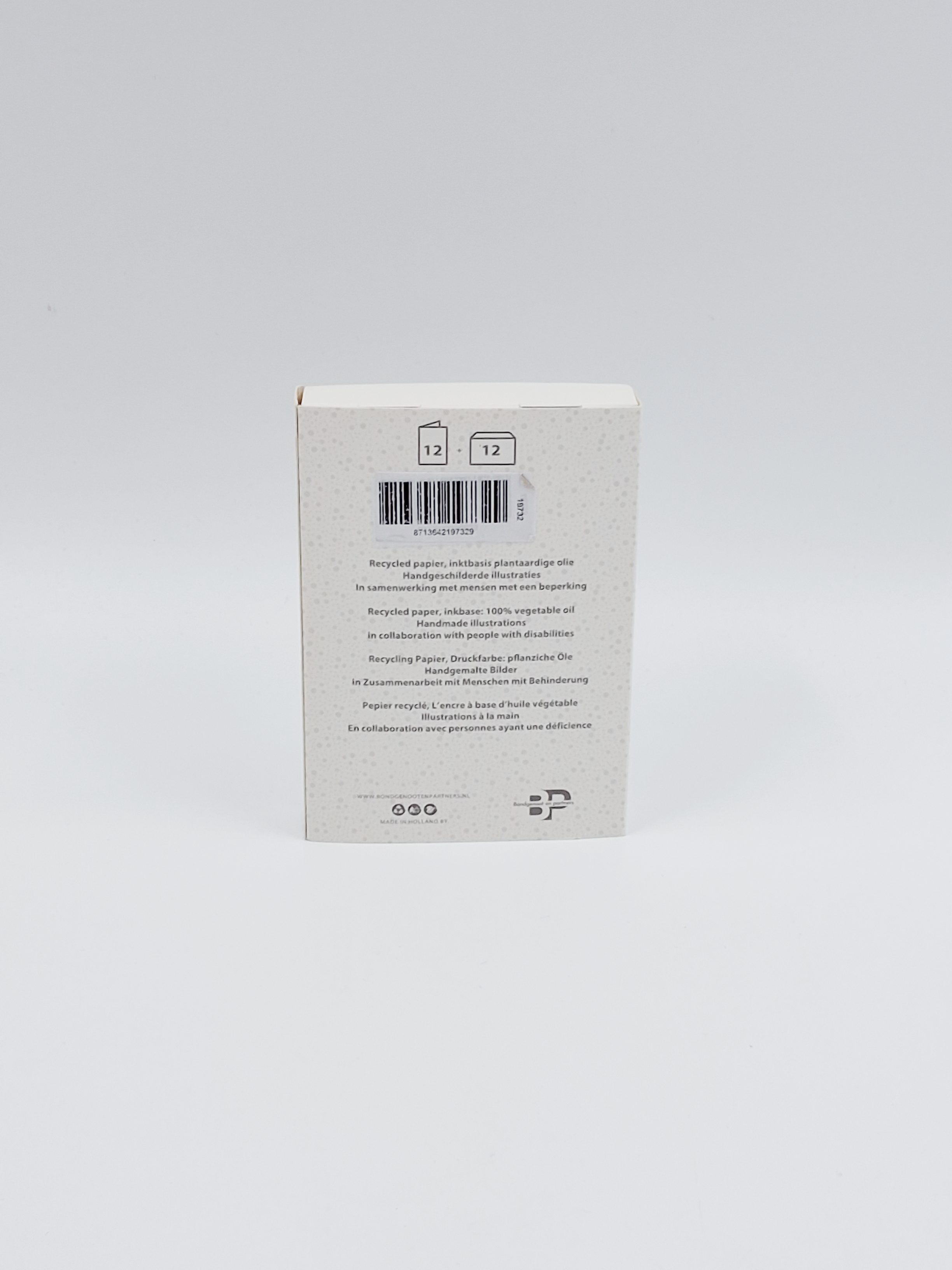 Onze kerstkaarten zijn gemaakt van gerecycled papier en bedrukt met inkt op basis van plantaardige olie.