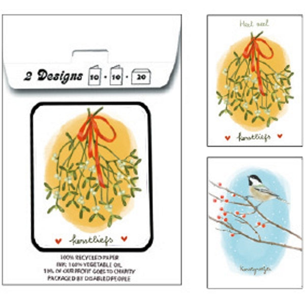 Kerstkaarten tasje 20x kerstgroetjes en liefs (F13105 + F13106)