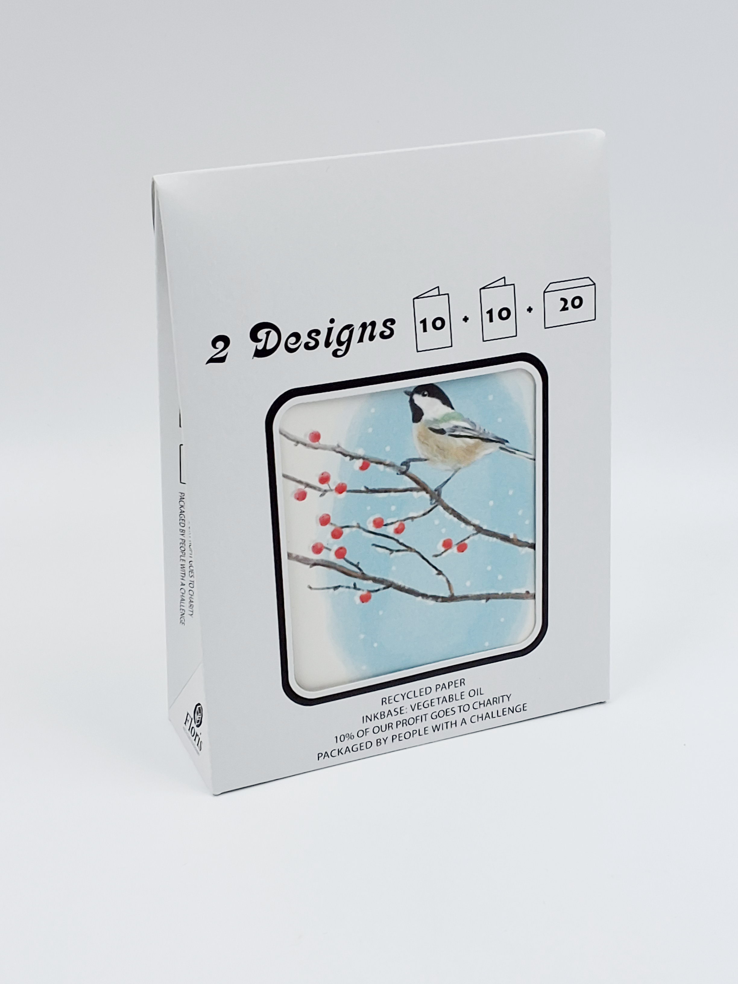 Een voordelig tasje met 20 kerstkaarten met 2 verschillende designs.