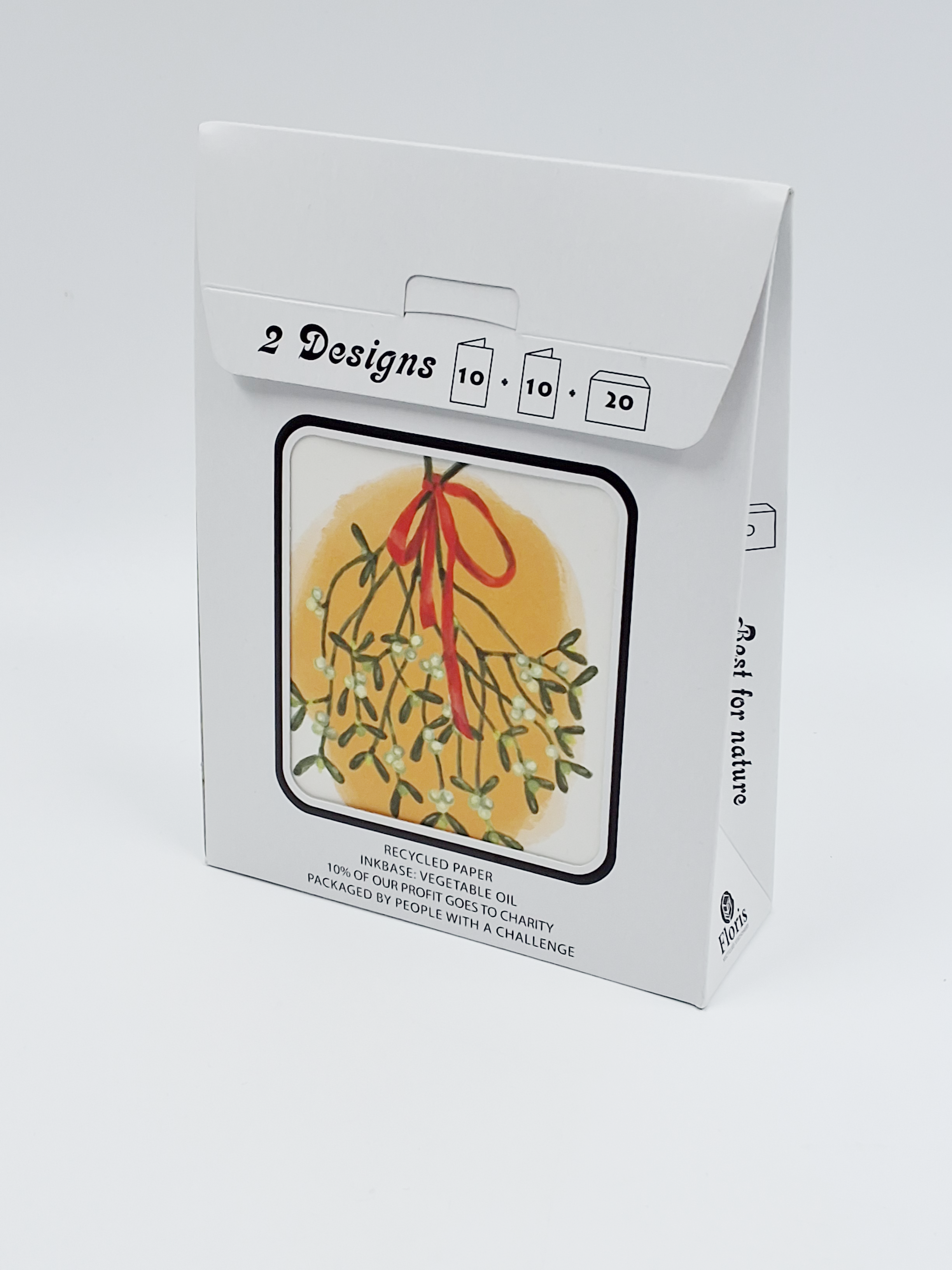 Onze kerstkaarten zijn gemaakt van gerecycled papier en bedrukt met inkt op basis van plantaardige olie.