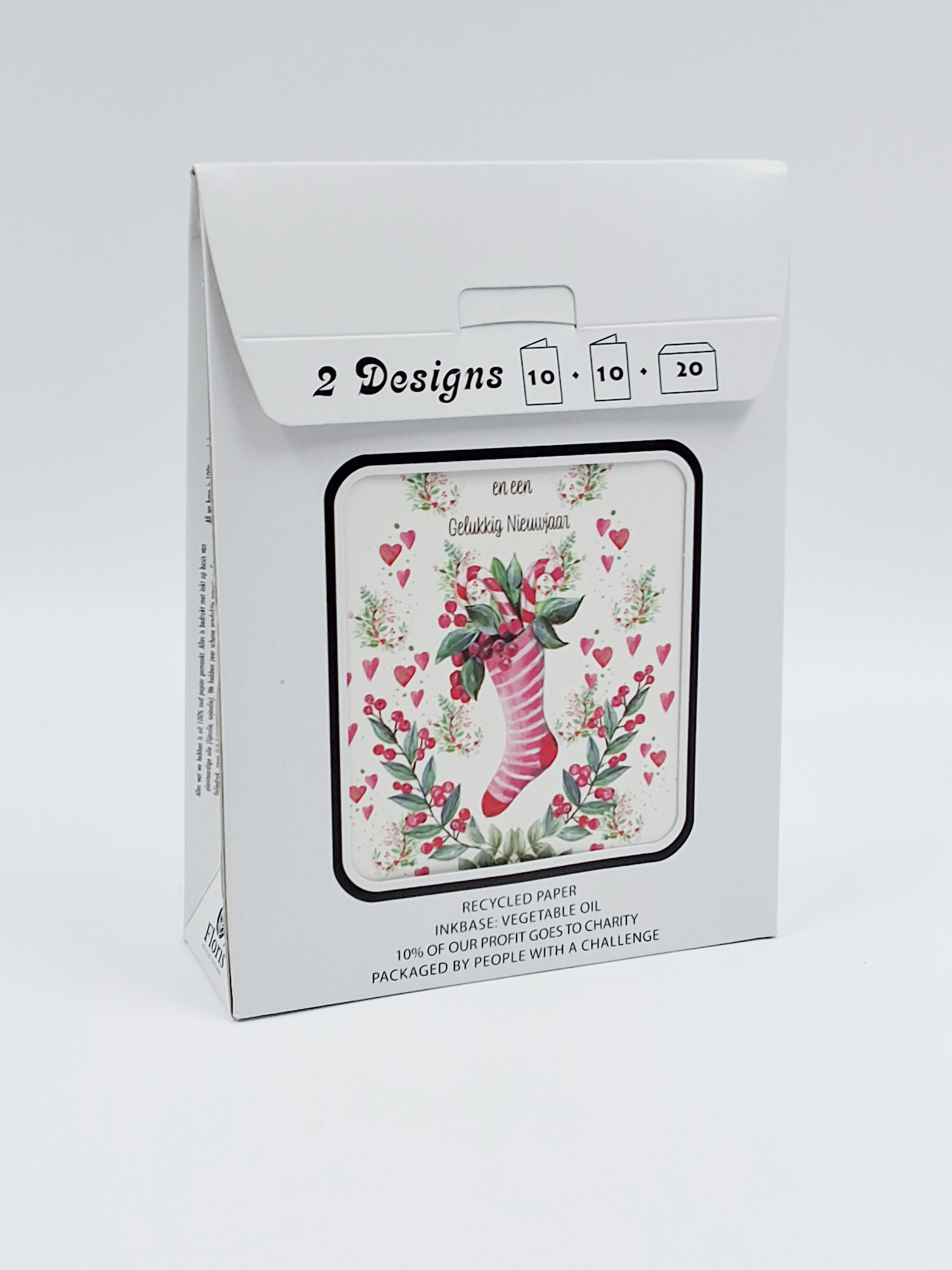 Een voordelig tasje met 20 kerstkaarten met 2 verschillende designs.