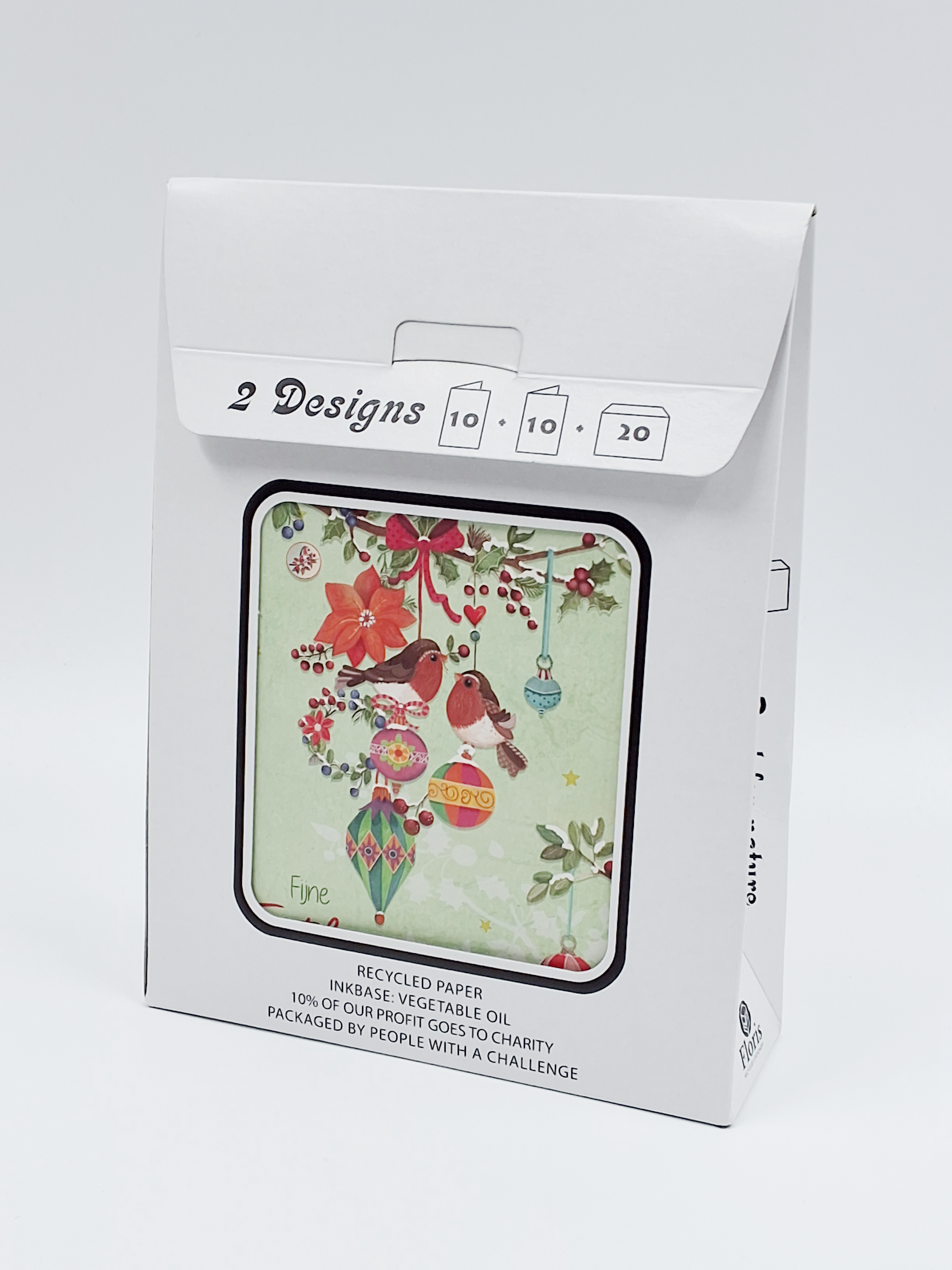 Alle kerstkaarten worden met liefde en precisie verpakt door mensen met een beperking.