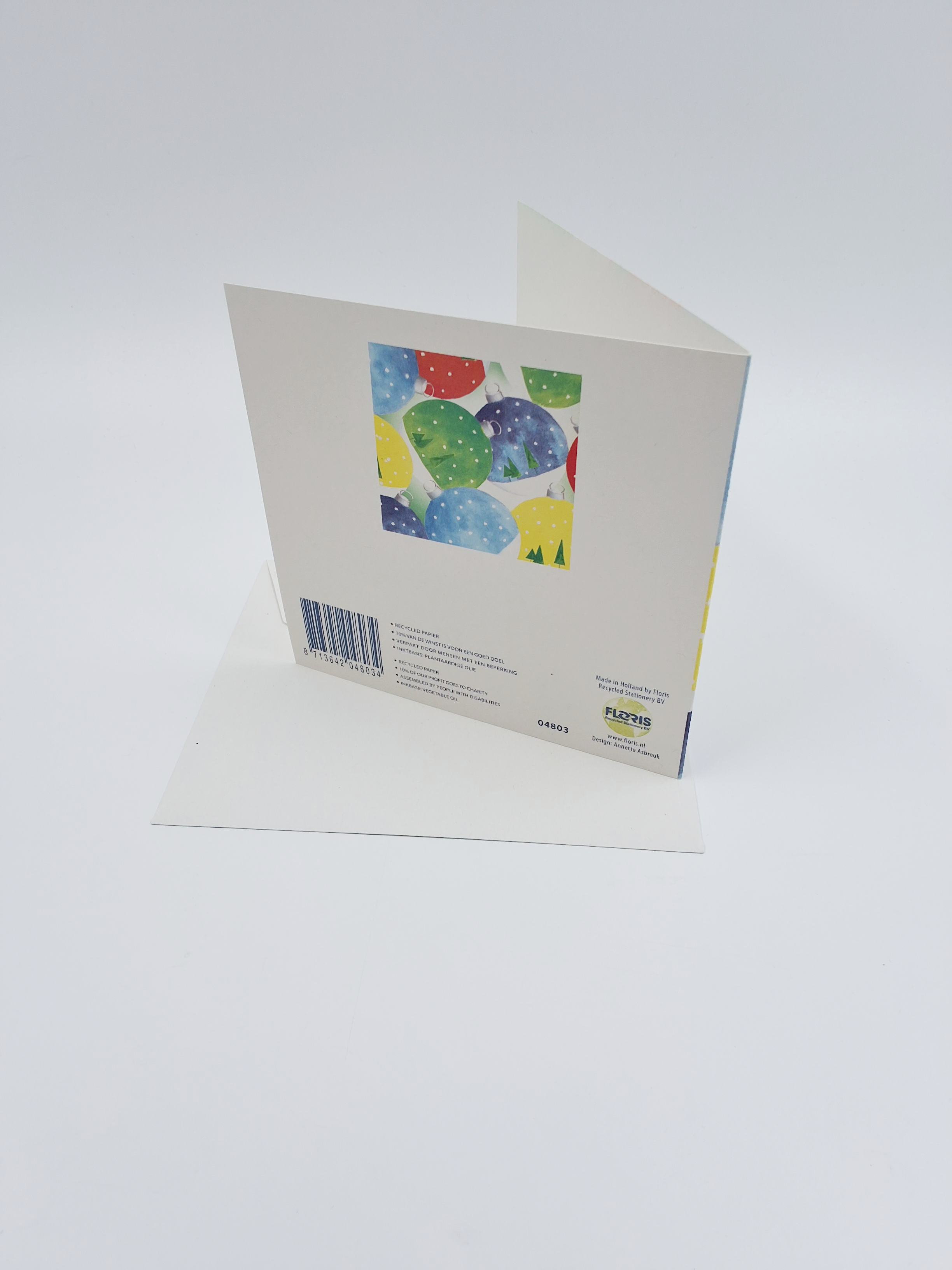 Onze wenskaarten zijn gemaakt van gerecycled papier en bedrukt met inkt op basis van plantaardige olie.