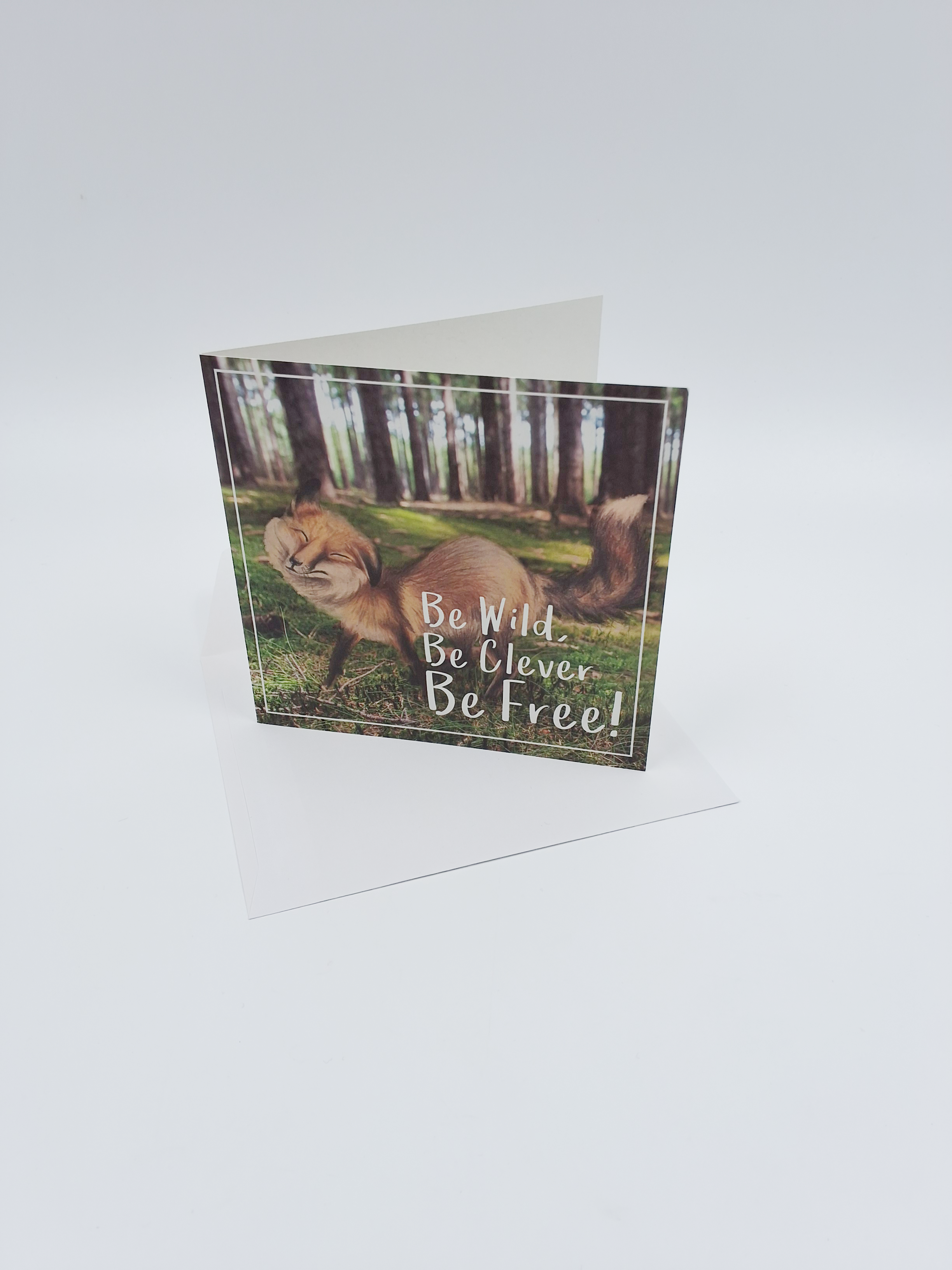 Vierkante wenskaart "Be Wild, Be Clever, Be Free!"