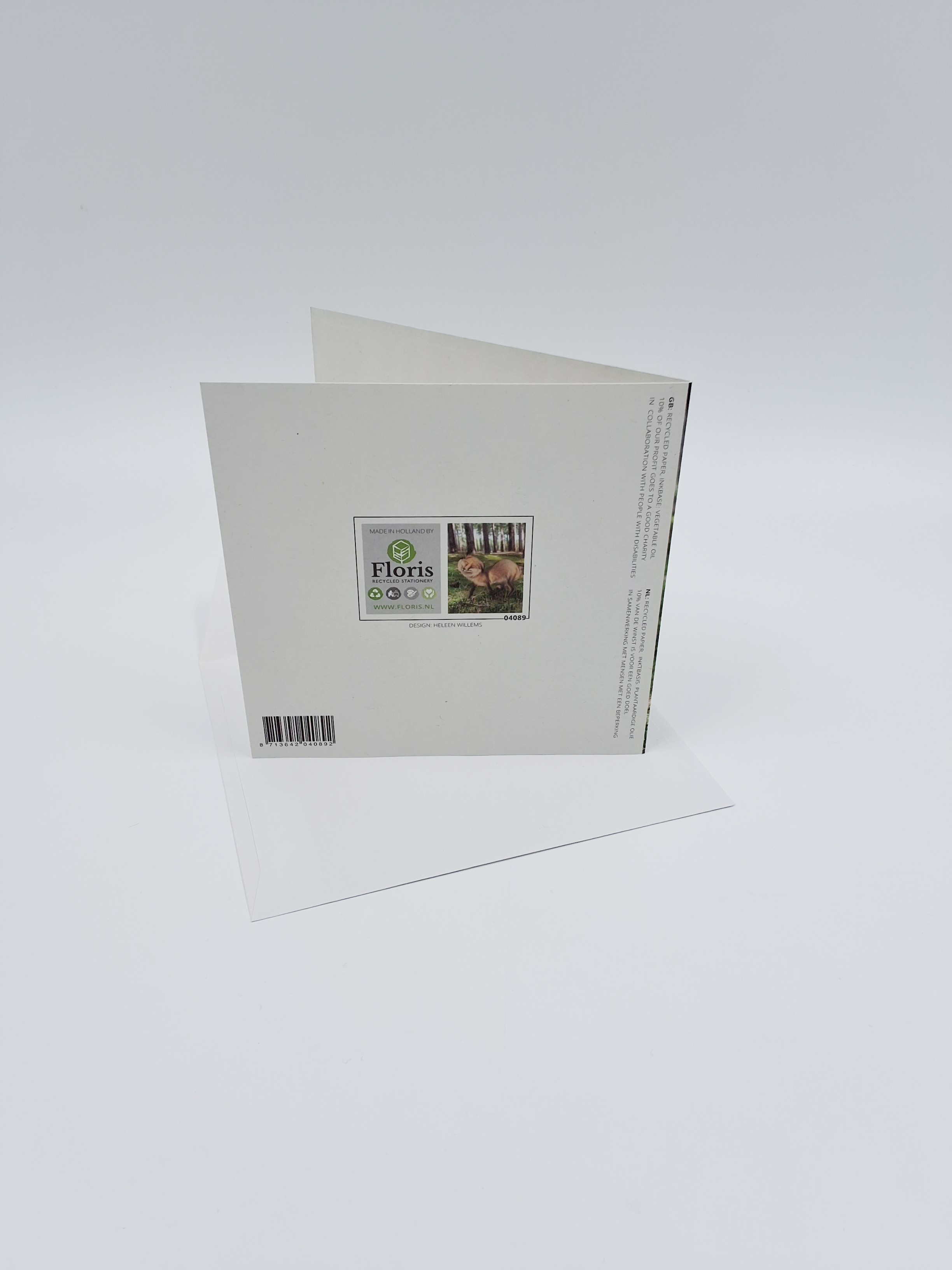Onze wenskaarten zijn gemaakt van gerecycled papier en bedrukt met inkt op basis van plantaardige olie.