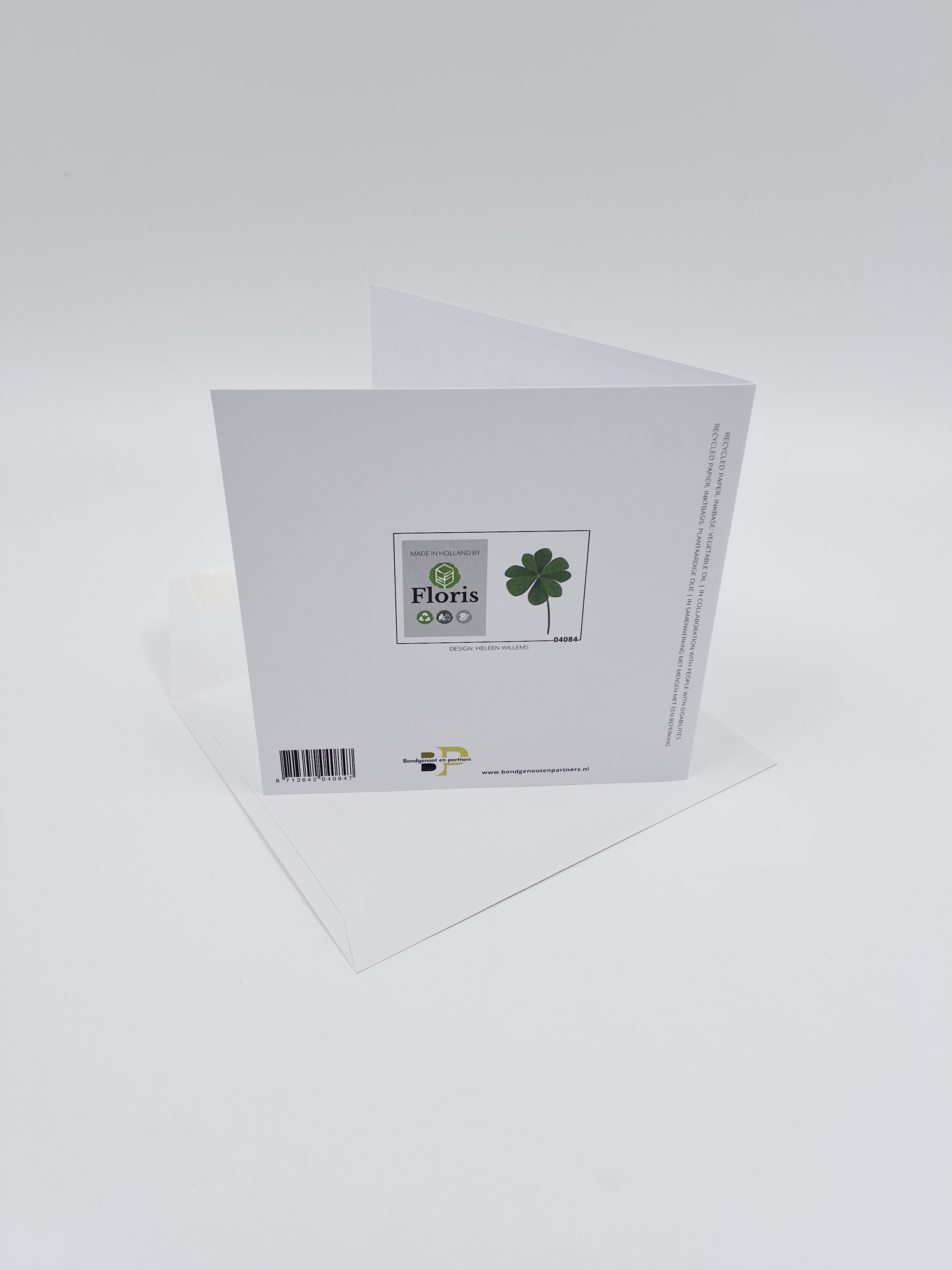 Onze wenskaarten zijn gemaakt van gerecycled papier en bedrukt met inkt op basis van plantaardige olie.