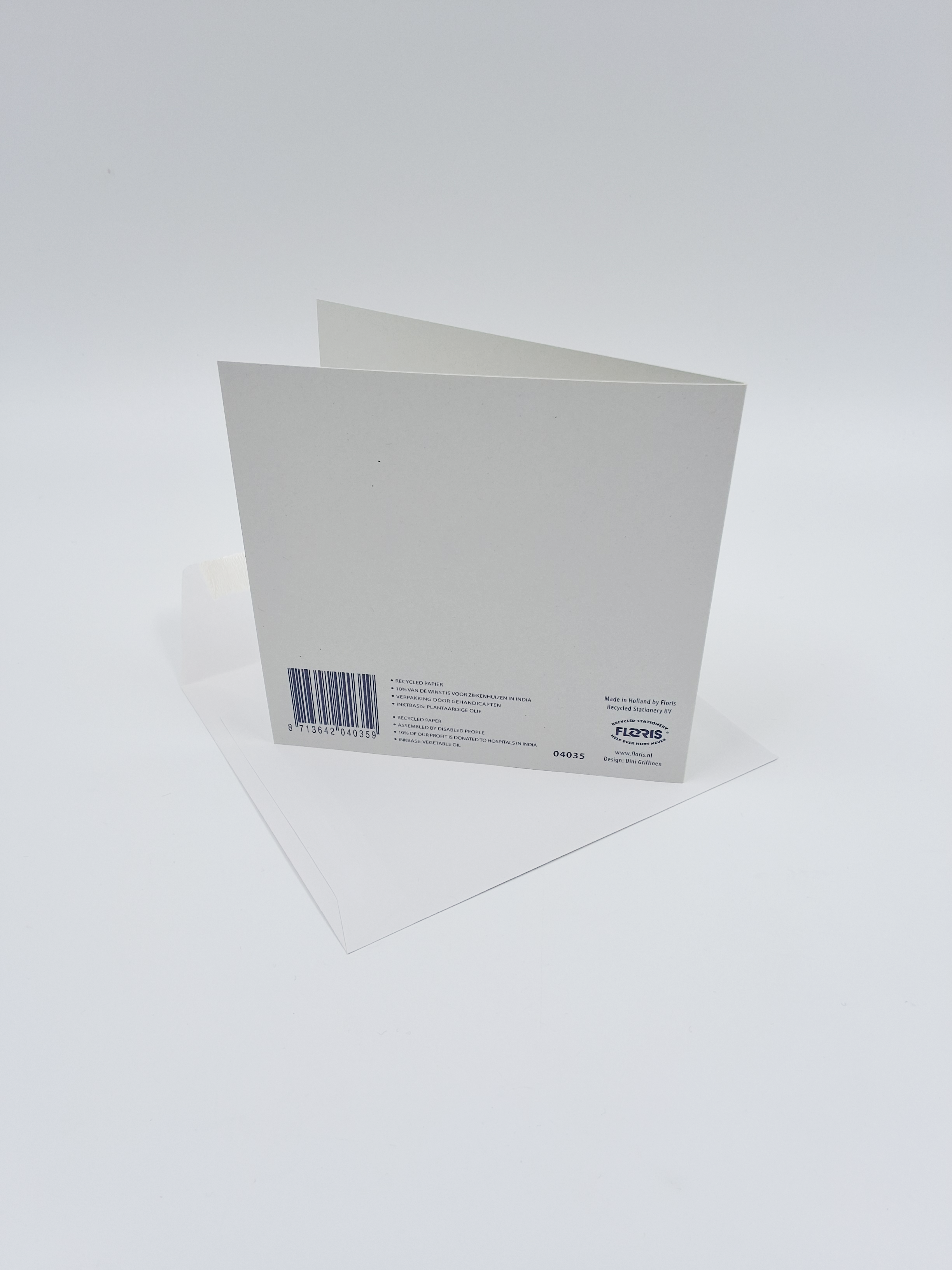 Onze wenskaarten zijn gemaakt van gerecycled papier en bedrukt met inkt op basis van plantaardige olie.