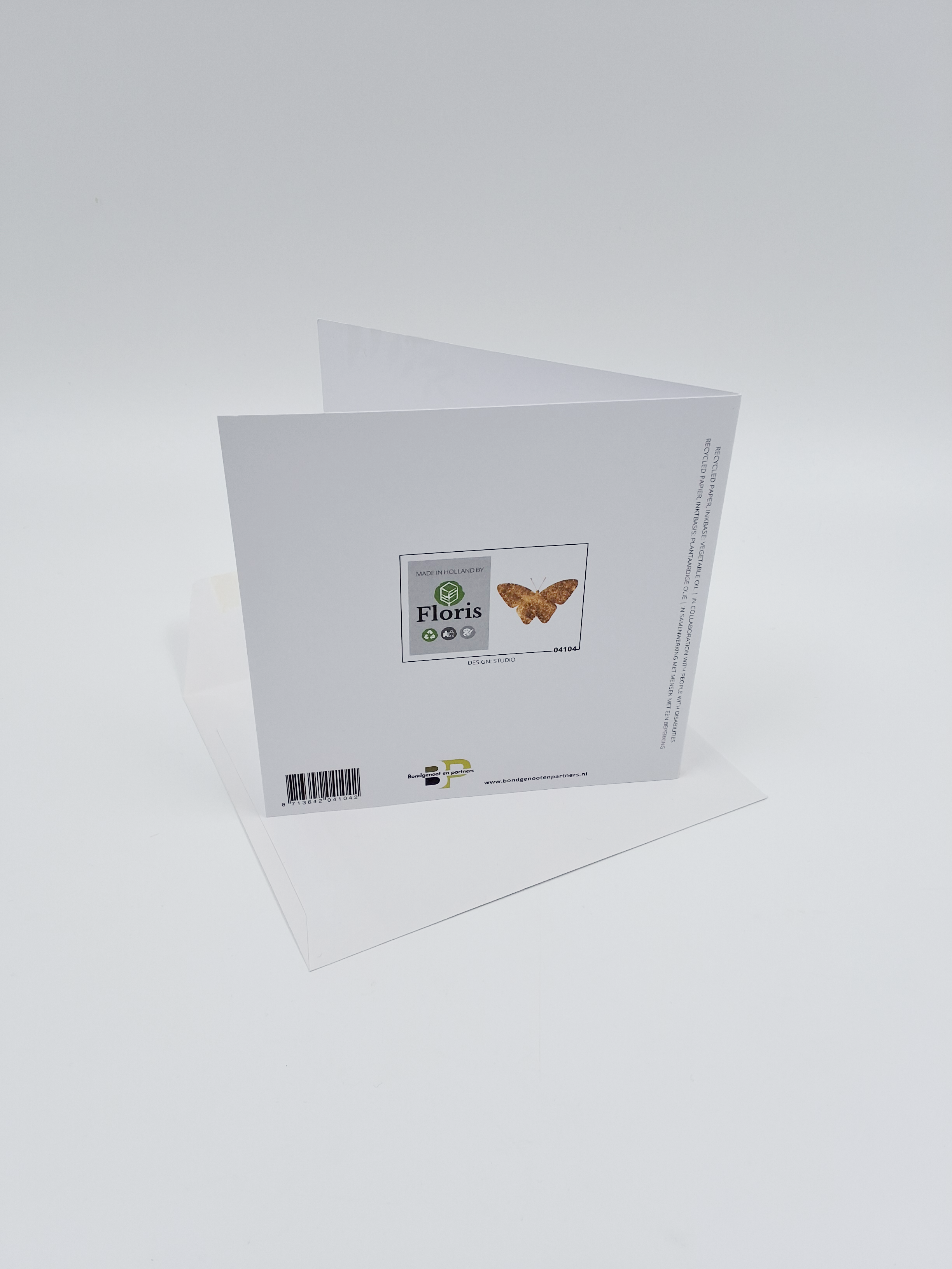 Onze wenskaarten zijn gemaakt van gerecycled papier en bedrukt met inkt op basis van plantaardige olie.
