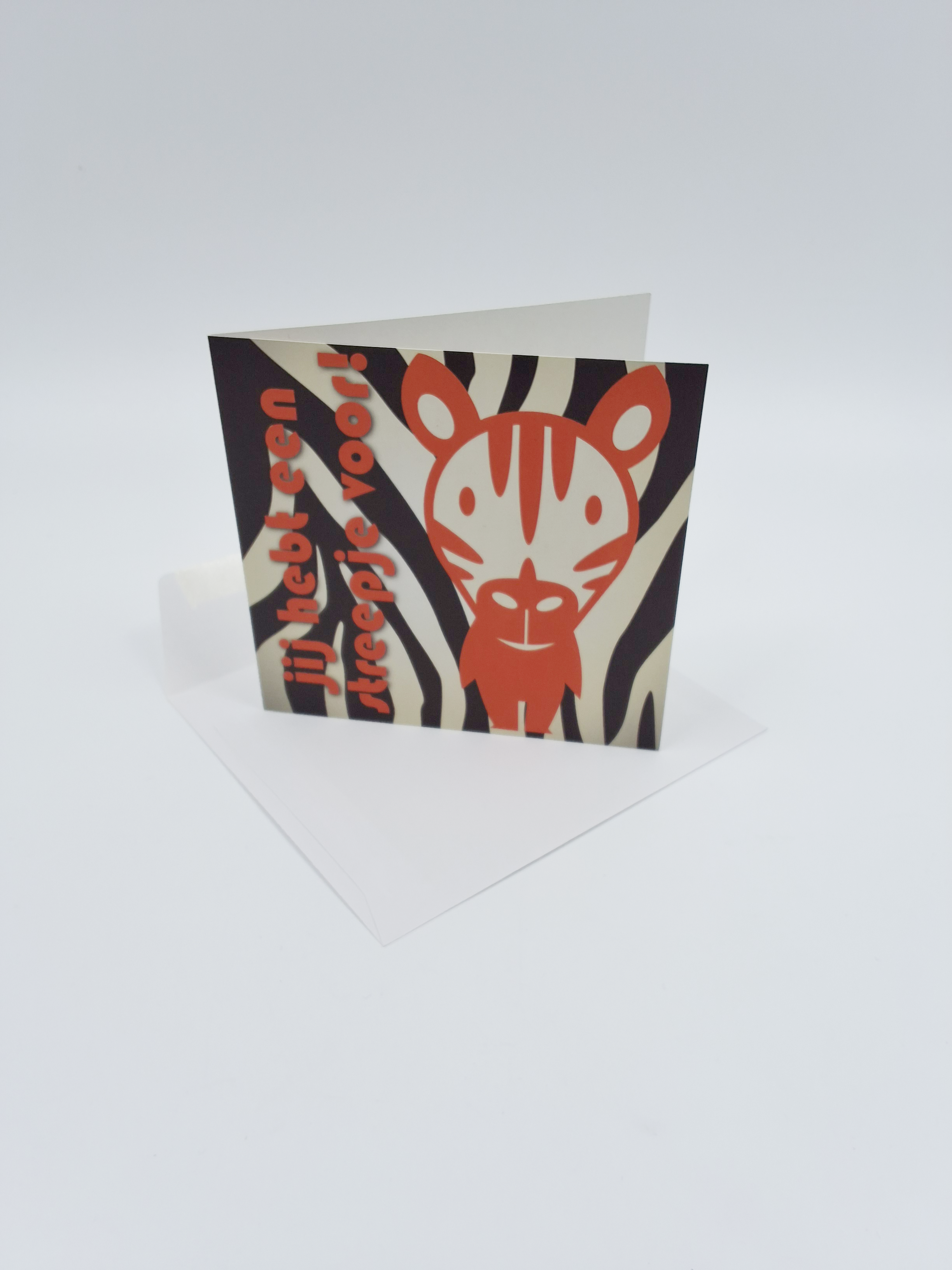 Vierkante wenskaart "Jij hebt een streepje voor!"