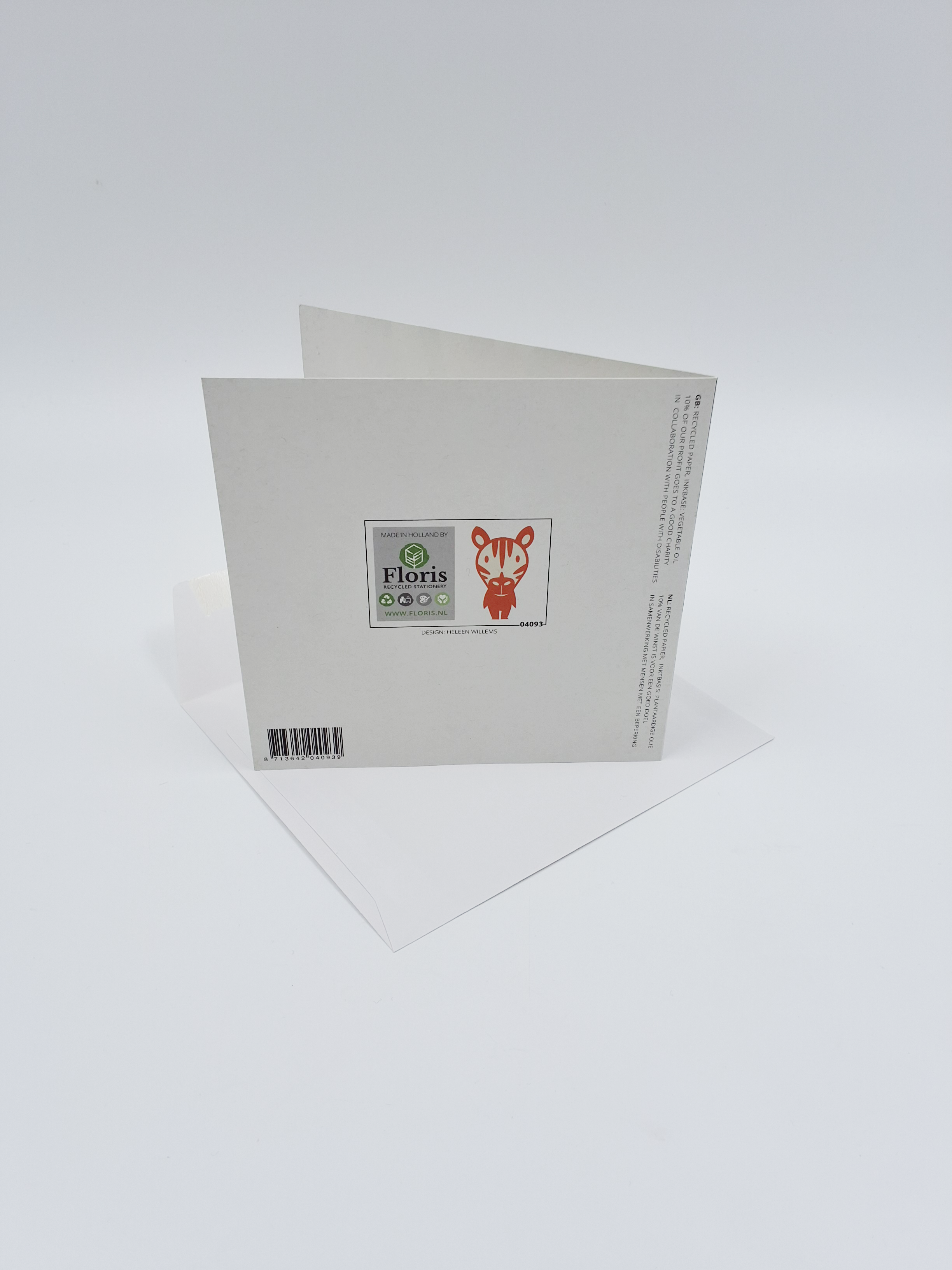 Onze wenskaarten zijn gemaakt van gerecycled papier en bedrukt met inkt op basis van plantaardige olie.
