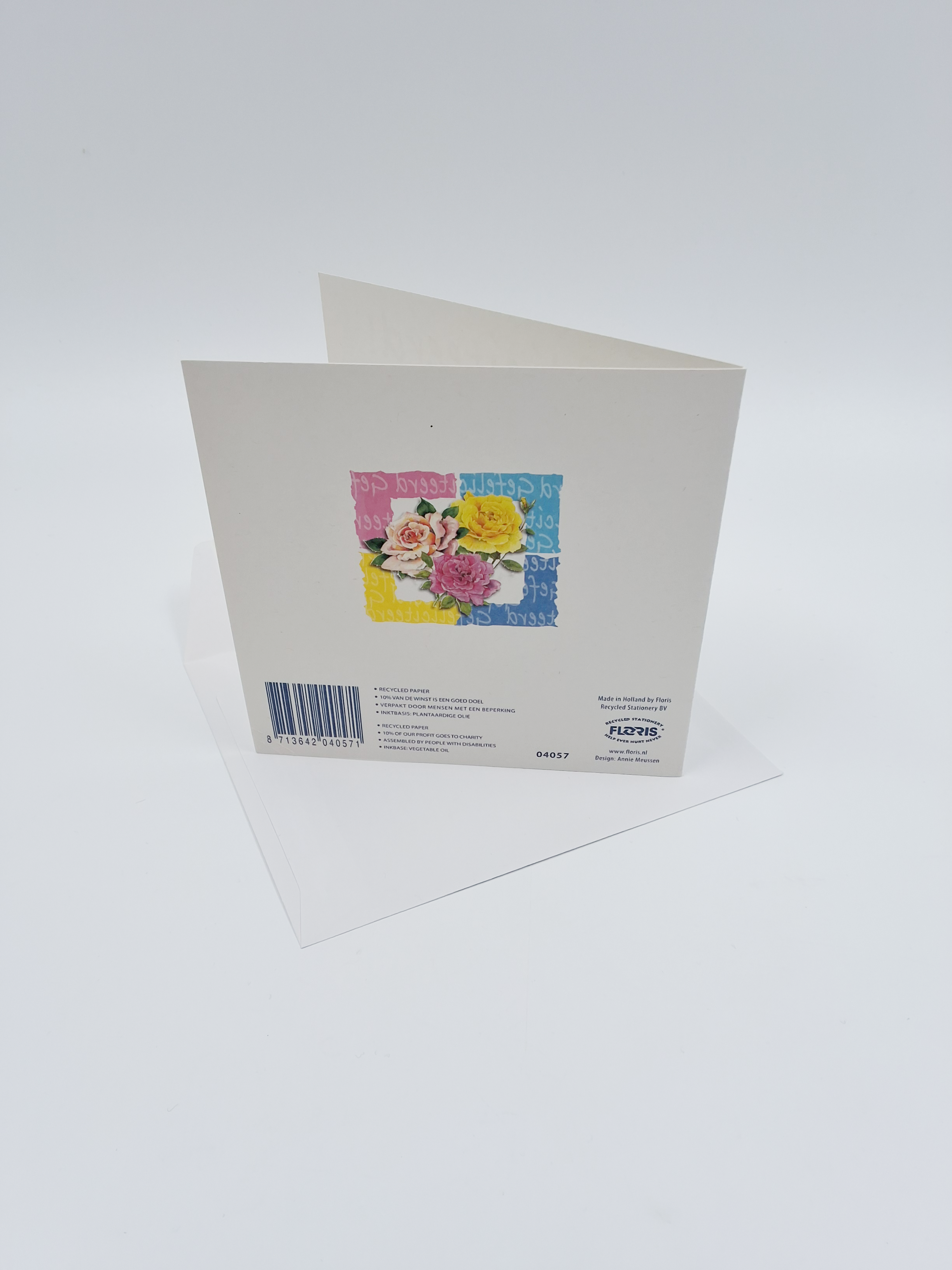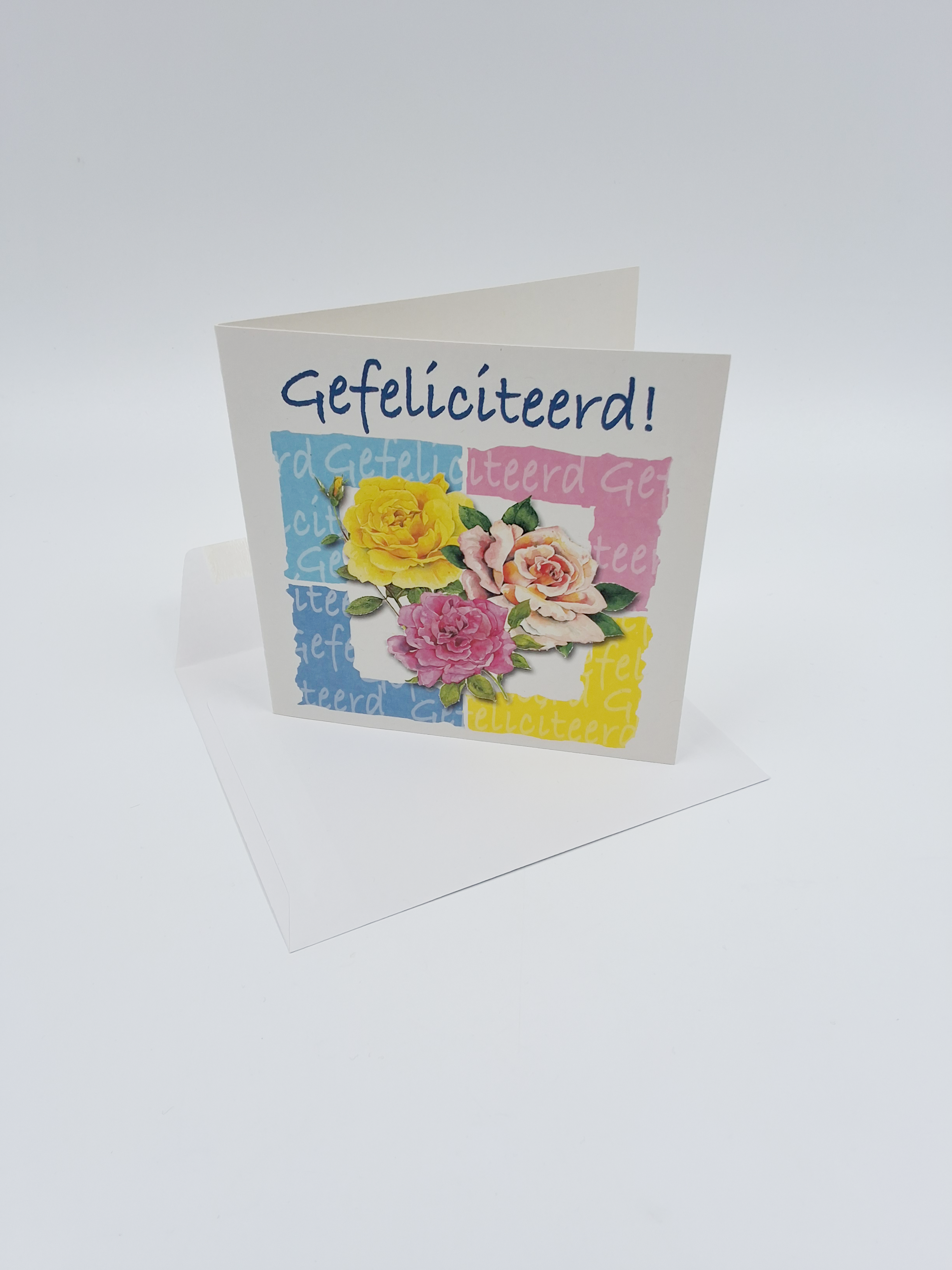 Vierkante wenskaart rozen, "Gefeliciteerd!"