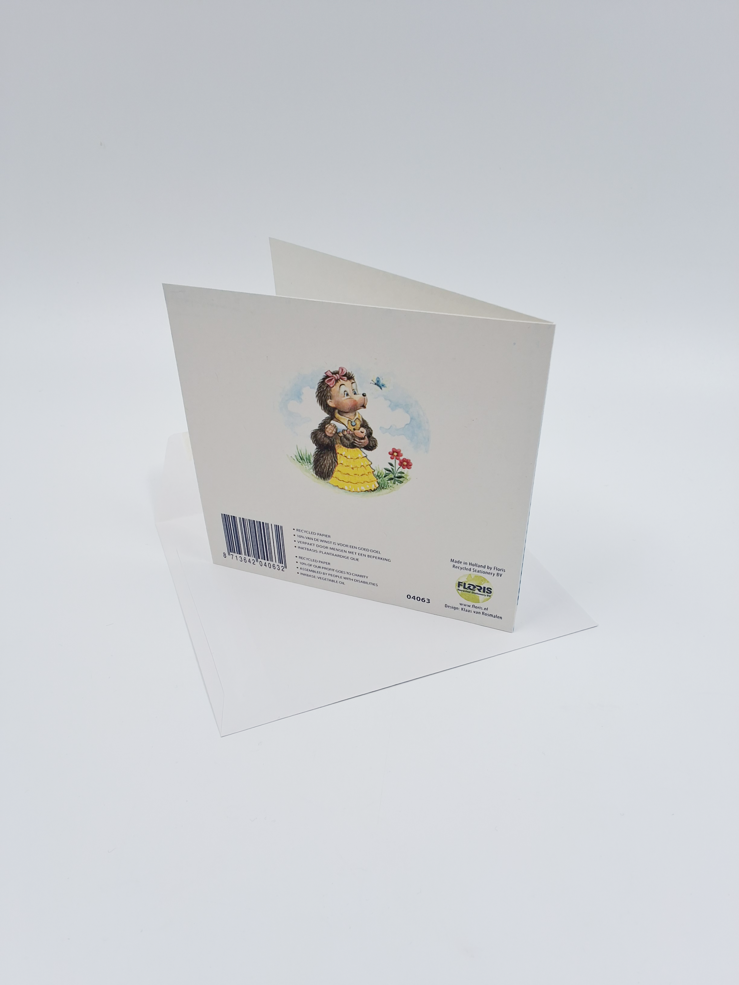 Onze wenskaarten zijn gemaakt van gerecycled papier en bedrukt met inkt op basis van plantaardige olie.