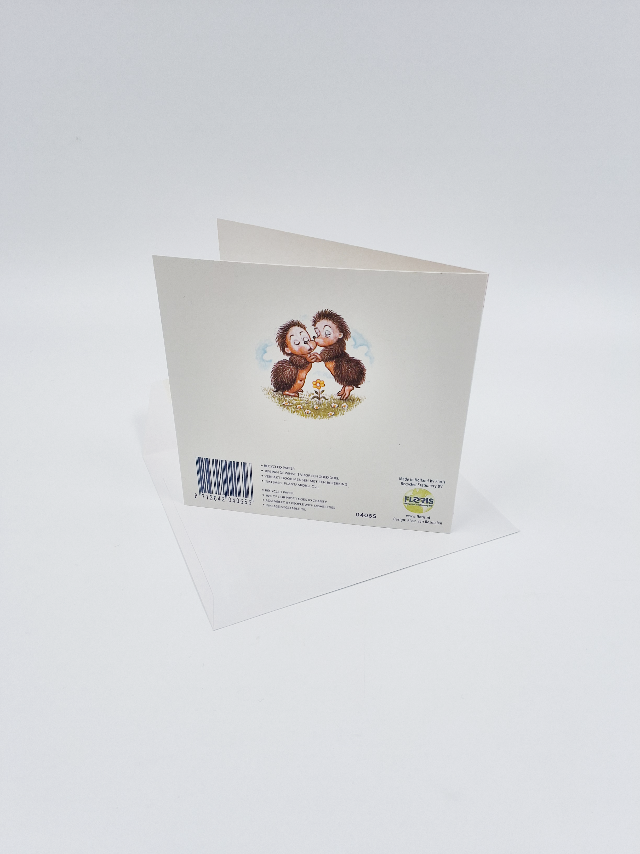 Onze wenskaarten zijn gemaakt van gerecycled papier en bedrukt met inkt op basis van plantaardige olie.