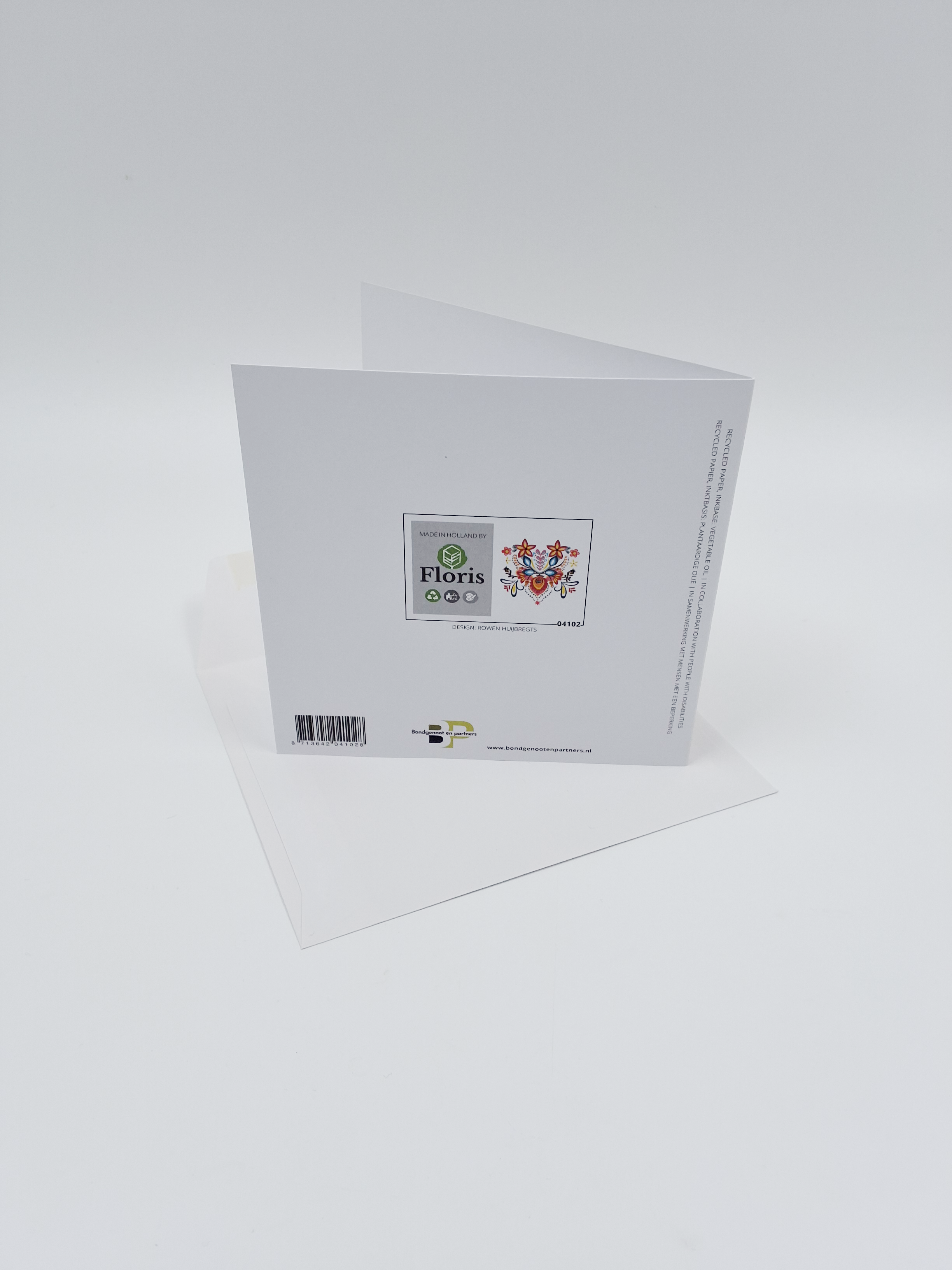 Onze wenskaarten zijn gemaakt van gerecycled papier en bedrukt met inkt op basis van plantaardige olie.
