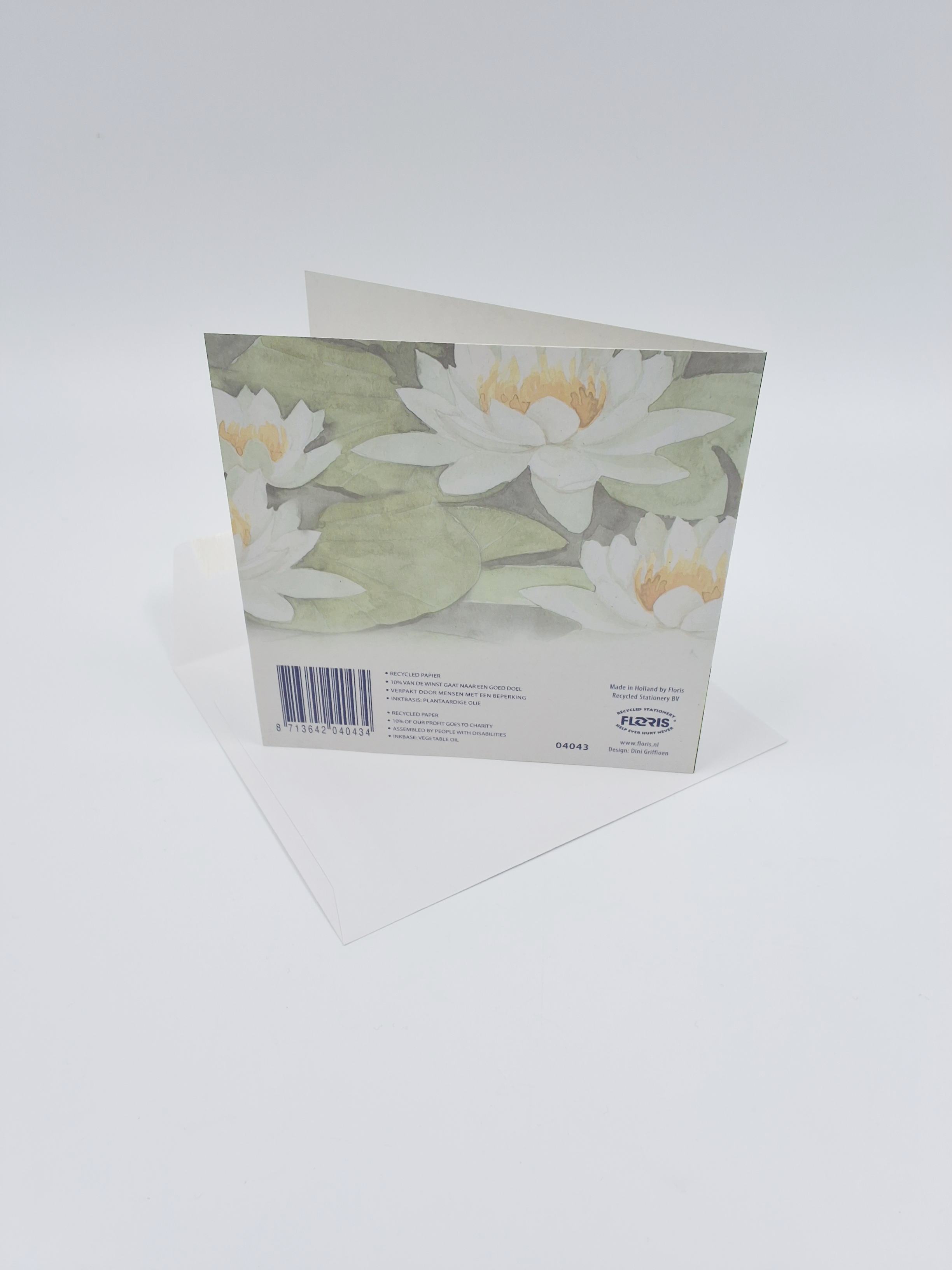 Onze wenskaarten zijn gemaakt van gerecycled papier en bedrukt met inkt op basis van plantaardige olie.