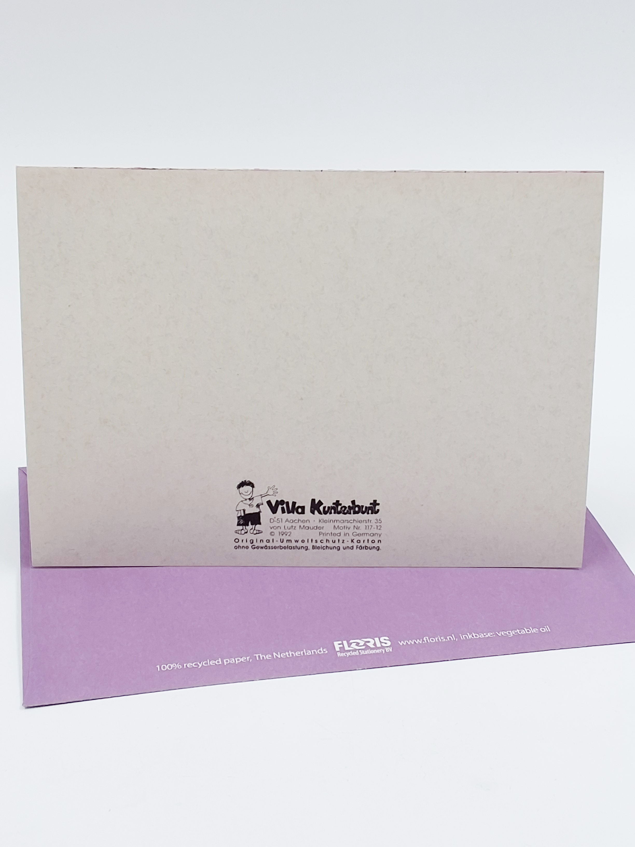 Onze wenskaarten zijn gemaakt van gerecycled papier en bedrukt met inkt op basis van plantaardige olie.