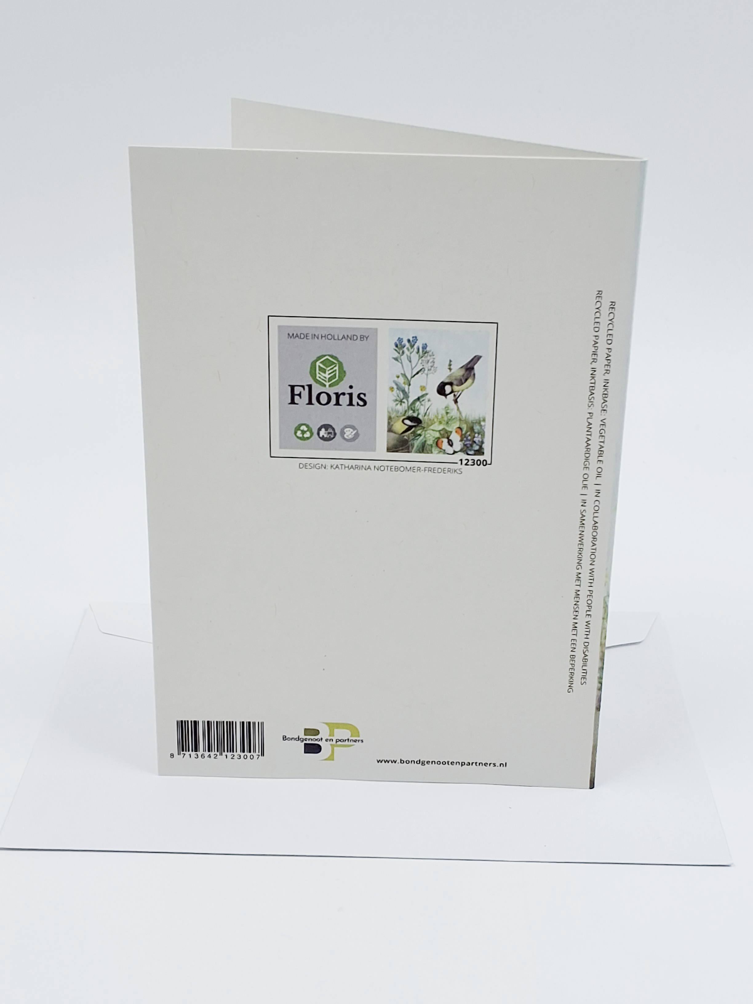 Onze wenskaarten zijn gemaakt van gerecycled papier en bedrukt met inkt op basis van plantaardige olie.