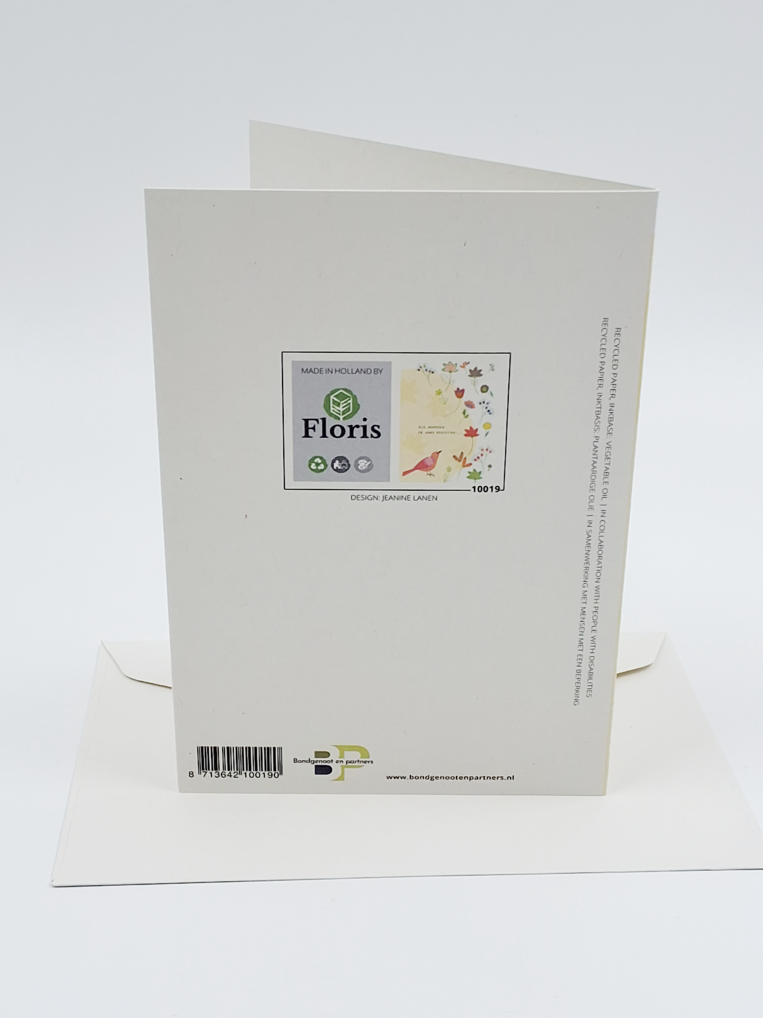 Onze wenskaarten zijn gemaakt van gerecycled papier en bedrukt met inkt op basis van plantaardige olie.