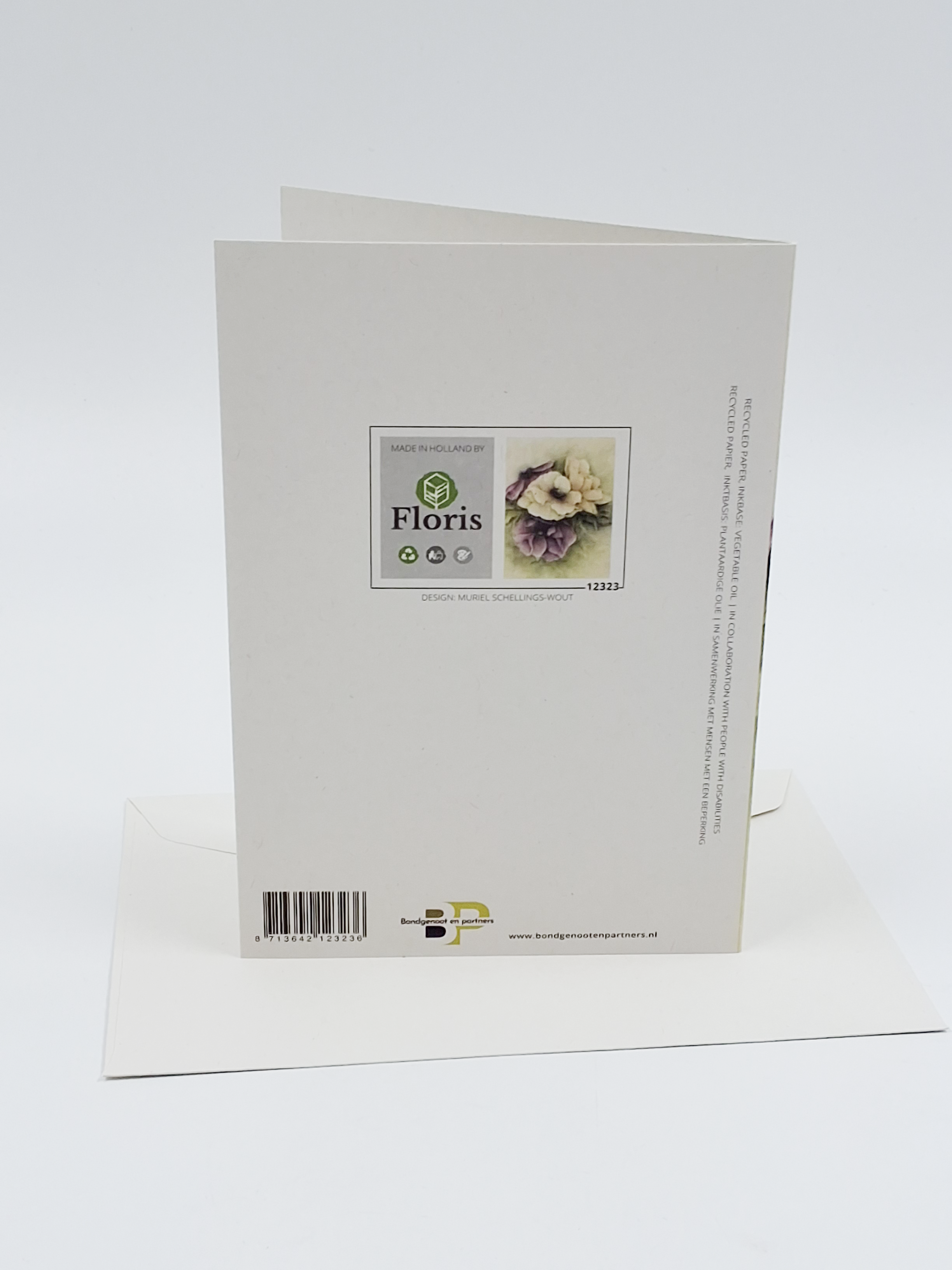 Onze wenskaarten zijn gemaakt van gerecycled papier en bedrukt met inkt op basis van plantaardige olie.