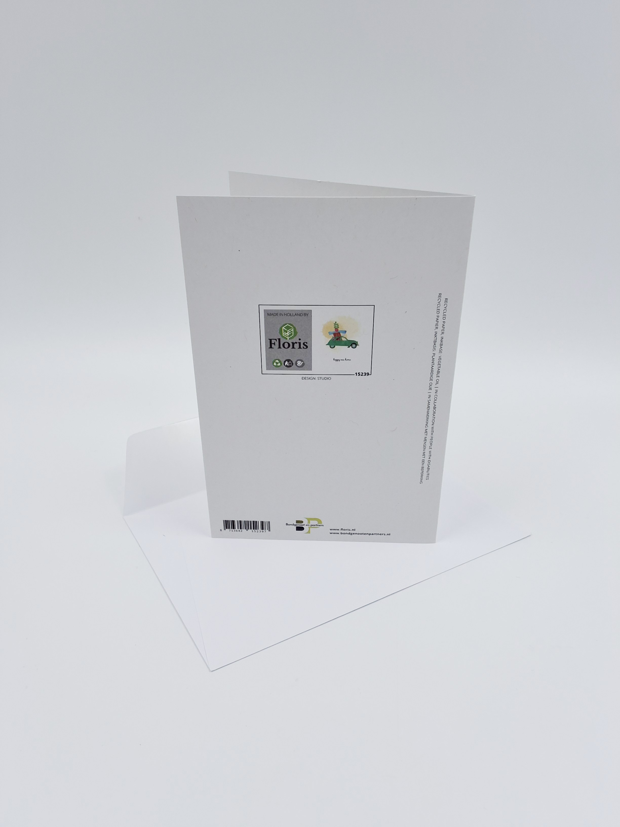 Onze wenskaarten zijn gemaakt van gerecycled papier en bedrukt met inkt op basis van plantaardige olie.