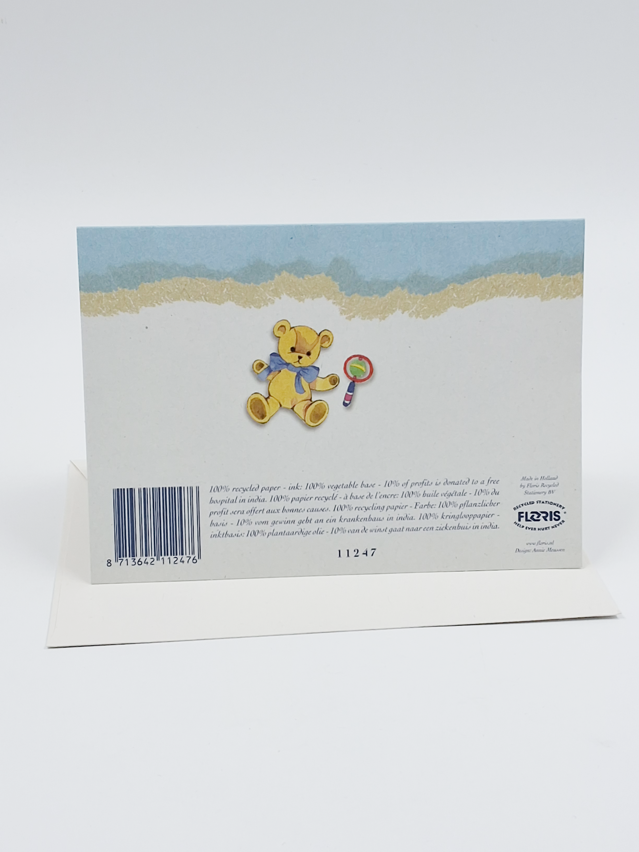 Onze wenskaarten zijn gemaakt van gerecycled papier en bedrukt met inkt op basis van plantaardige olie.