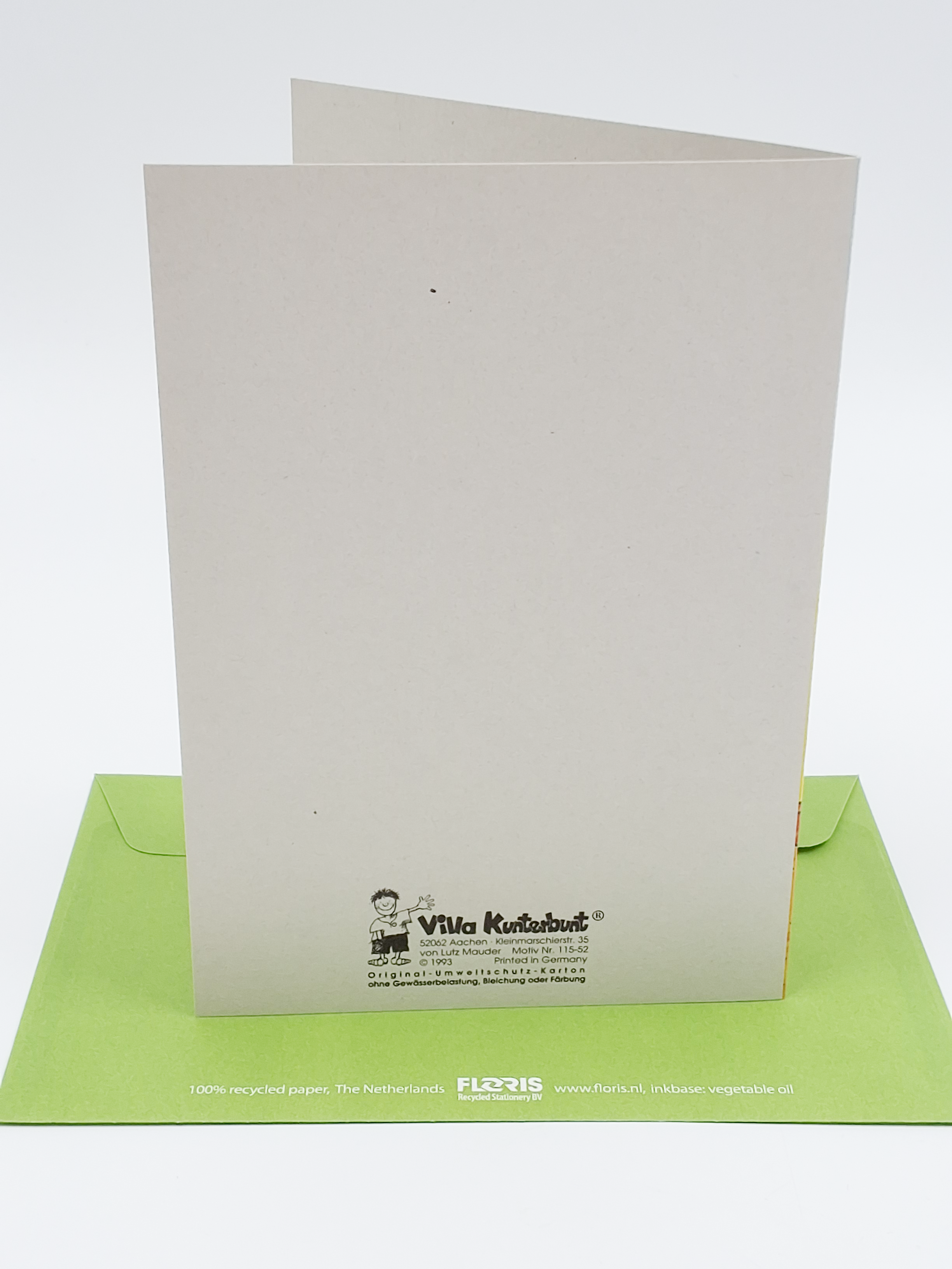 Onze wenskaarten zijn gemaakt van gerecycled papier en bedrukt met inkt op basis van plantaardige olie.