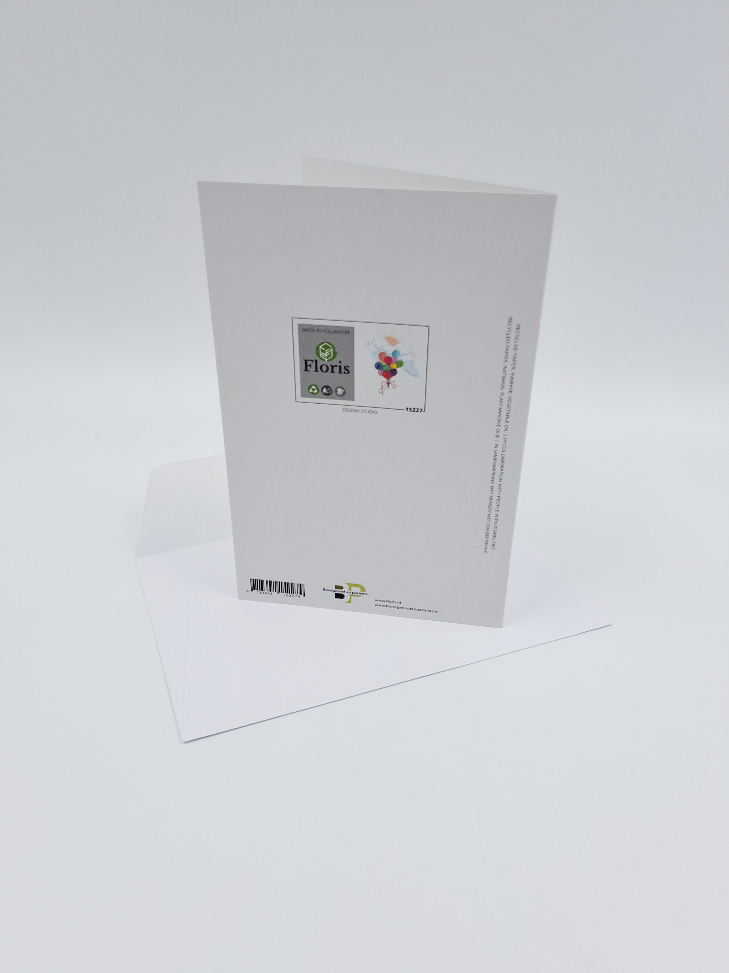 Deze wenskaart is iets groter dan een standaard wenskaart en heeft geen plastiek verpakking. Elke kaart komt met een passende envelop.