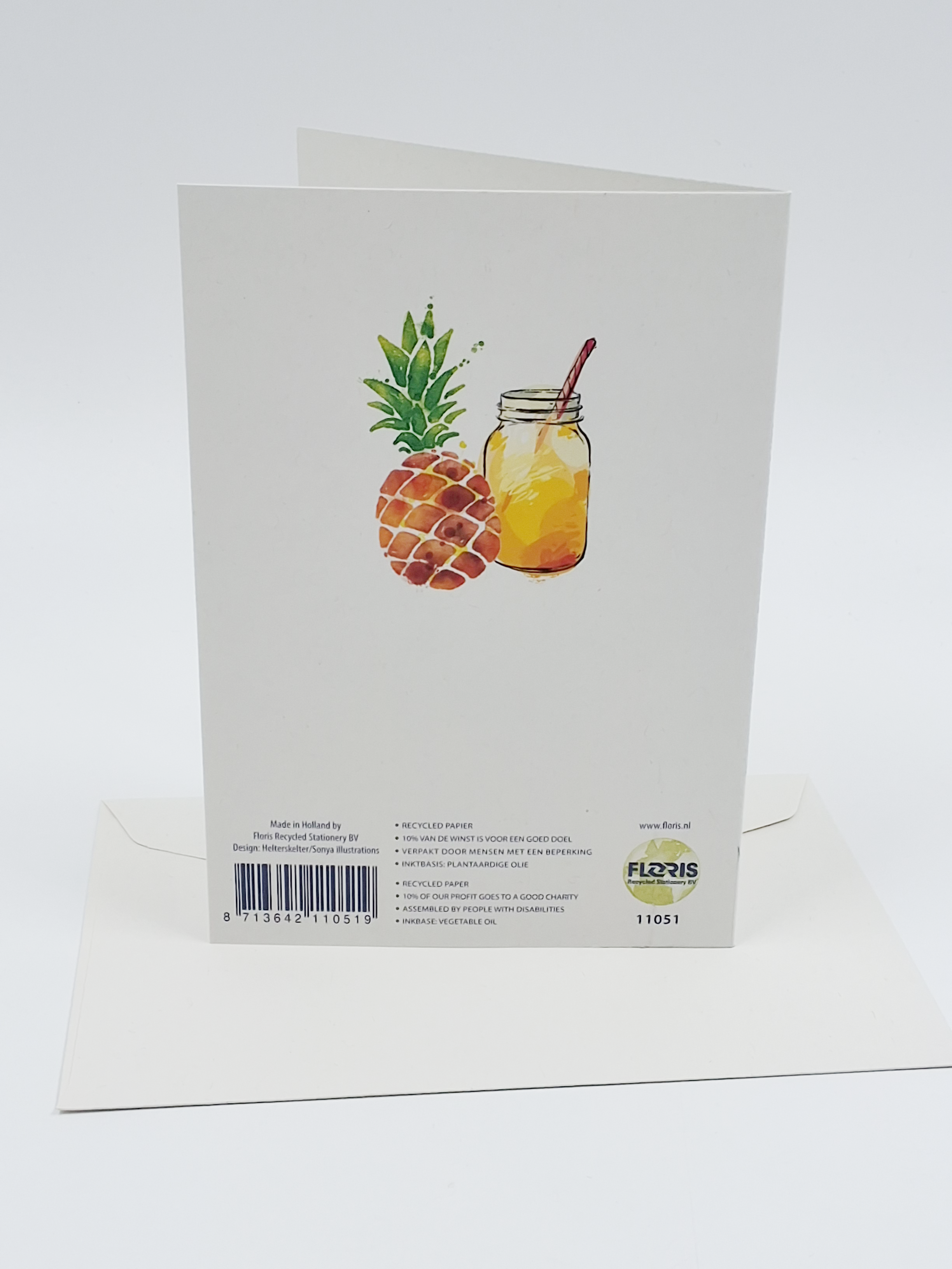 Onze wenskaarten zijn gemaakt van gerecycled papier en bedrukt met inkt op basis van plantaardige olie.