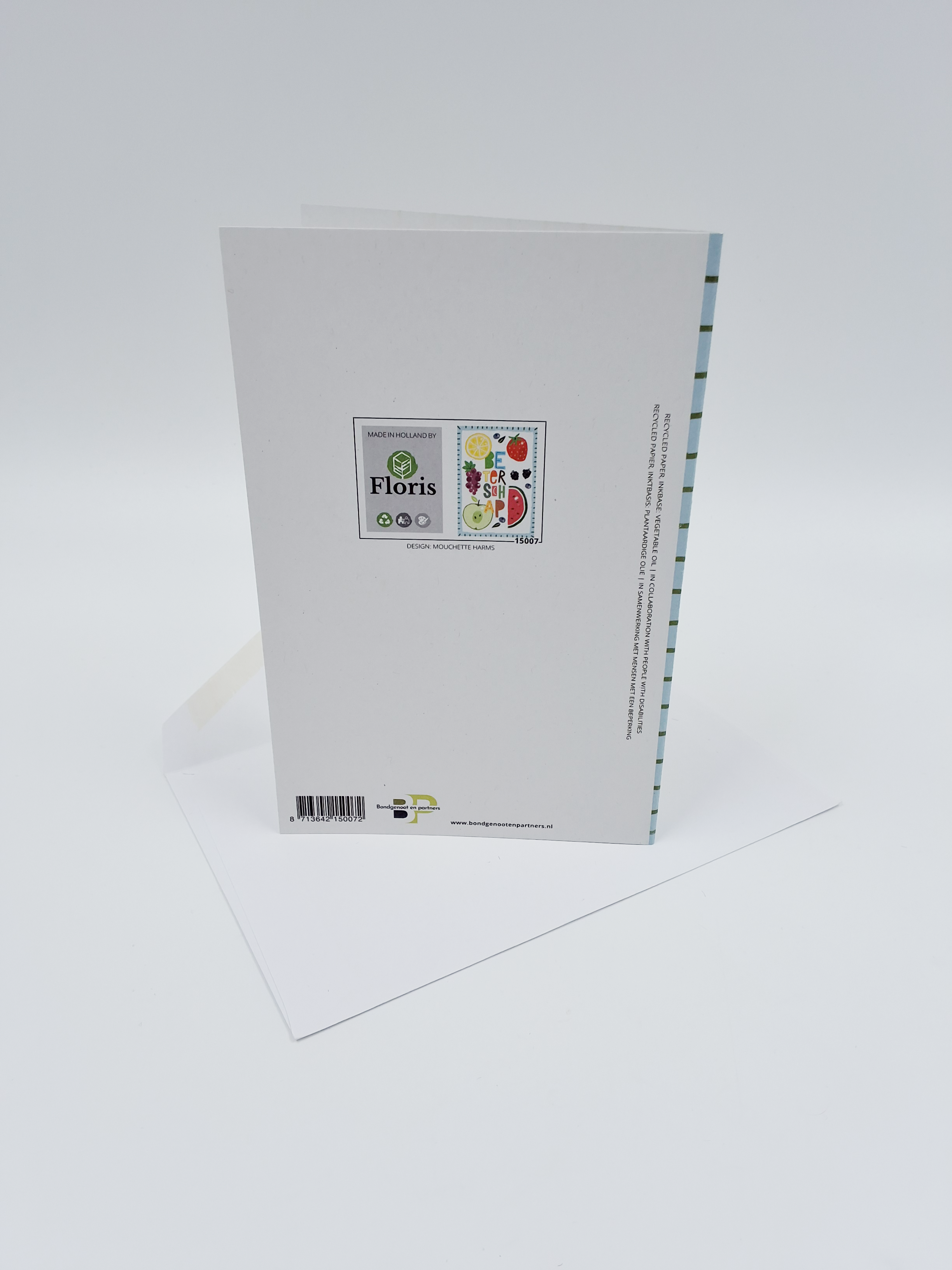 Onze wenskaarten zijn gemaakt van gerecycled papier en bedrukt met inkt op basis van plantaardige olie.