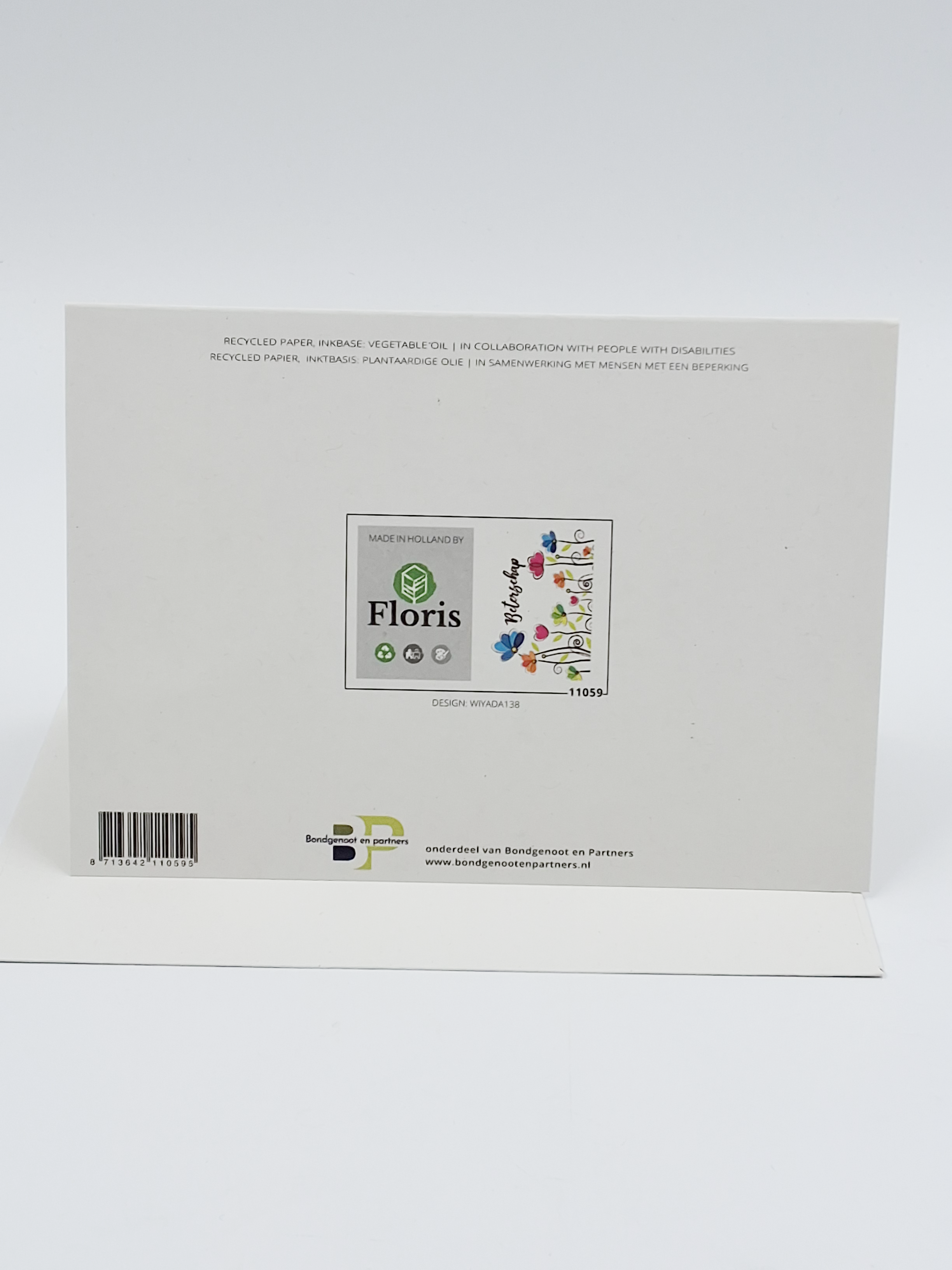 Onze wenskaarten zijn gemaakt van gerecycled papier en bedrukt met inkt op basis van plantaardige olie.