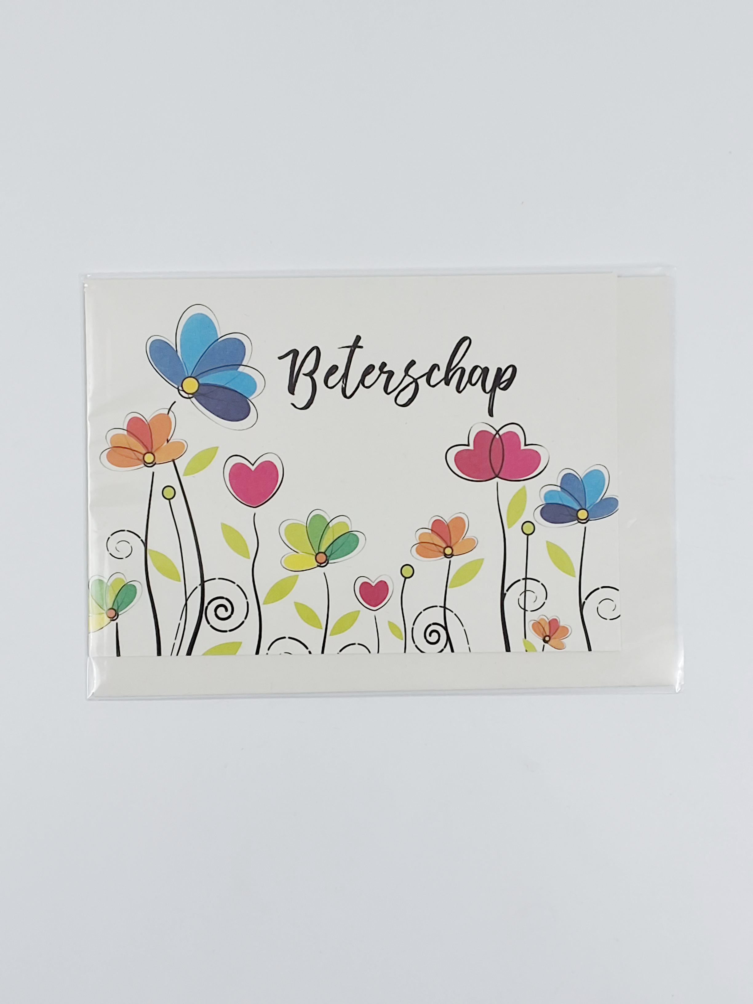 Wenskaart beterschap, bloemetjes